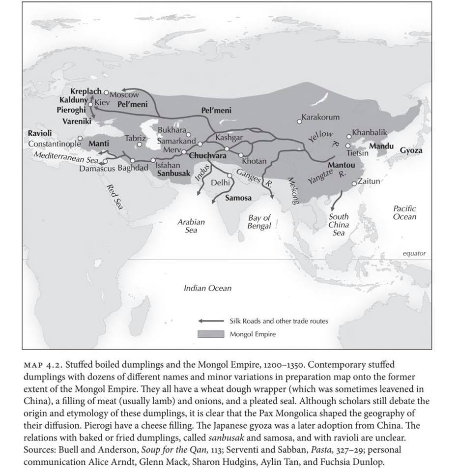 This chart of the evolution and movement of dumplings across Asia and into Europe was floating around social media, as it deserved to be.