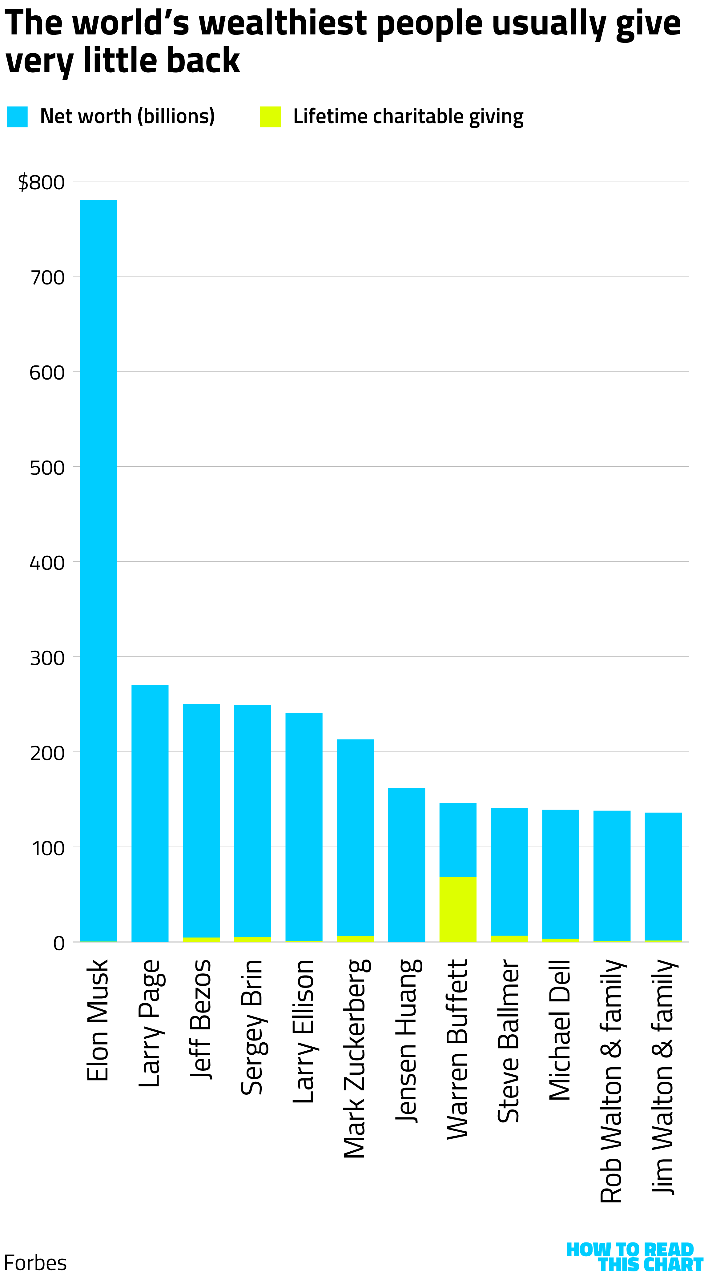 The good people at Forbes, who diligently document just how outrageously wealthy the outrageously wealthy are, put together data on the philanthropic activity of some of the world's richest people.