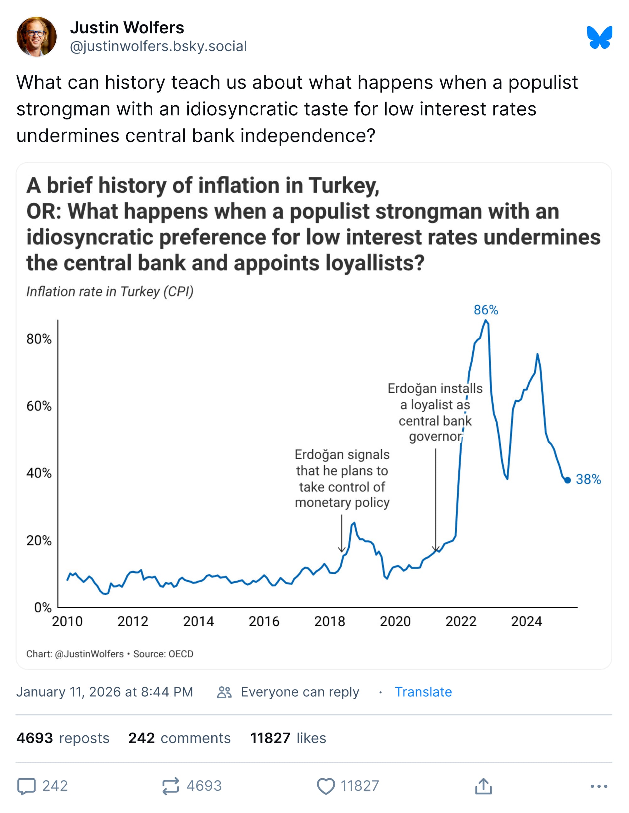 One thing that was in the news this week, you will recall, is that the chairman of the Federal Reserve accused the White House of trying to use a pretext to destroy the Fed's independence.