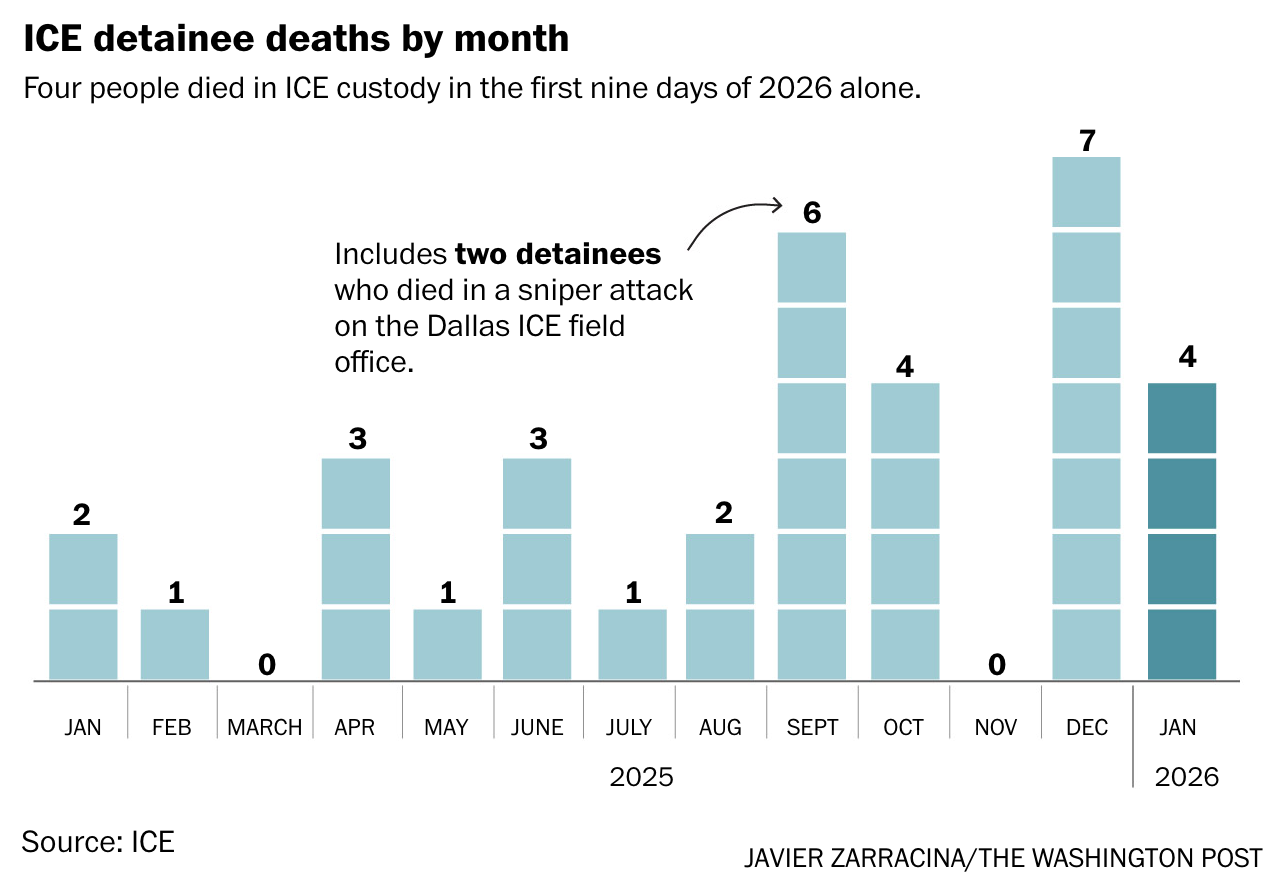 The Washington Post, meanwhile, made a chart showing how many people had died in ICE detention each month since Trump returned to office.