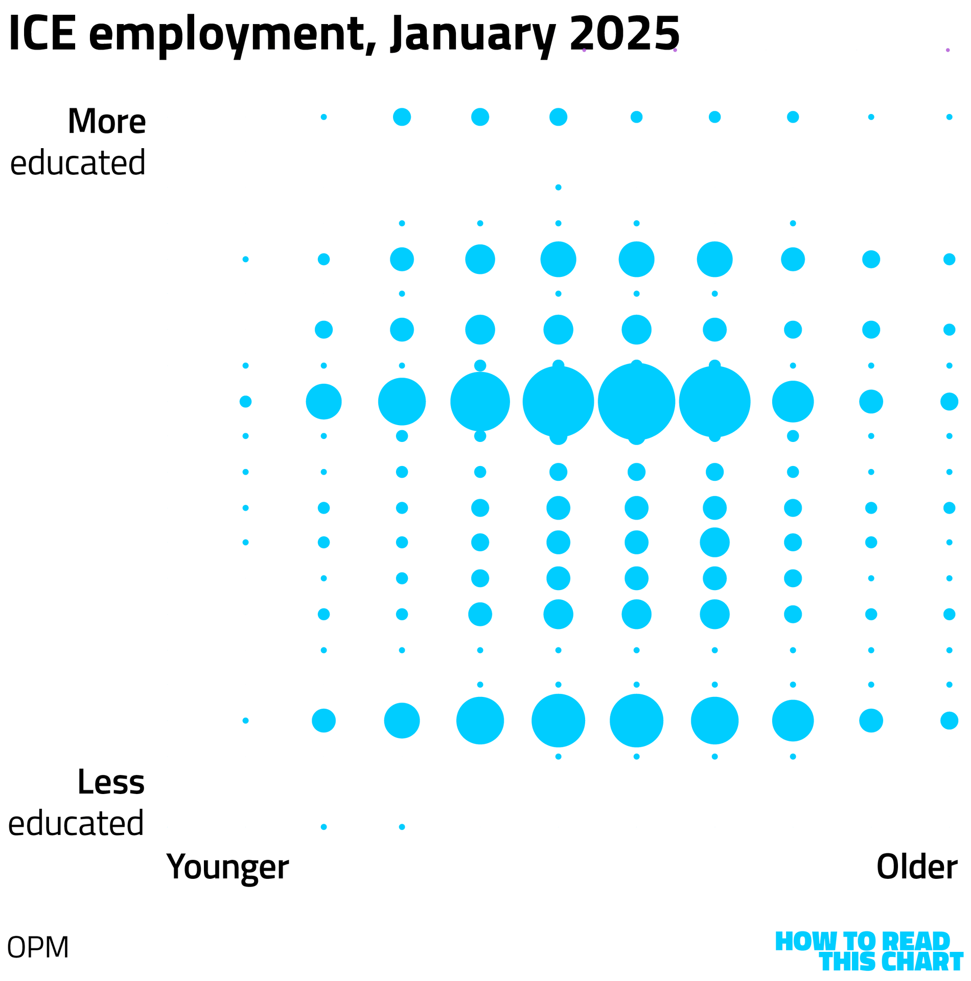 For that piece, I pulled data from the Office of Personnel Management to see how ICE's employment growth compared to other government agencies. (There was growth, which was not the norm.) But then I discovered that OPM also included data on age and education, so I decided to see how the demographics of the agency had changed.