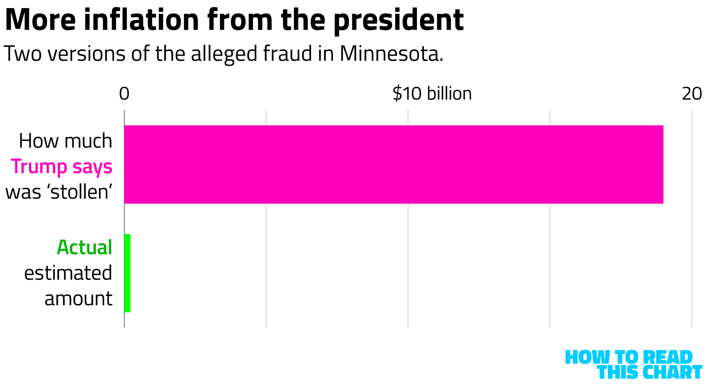 President Trump, meanwhile, decided to tell people that the fraud that is serving as the pretext for the sweeping immigration raids in Minnesota amounted to $19 billion. That's a bit higher than actual estimates.