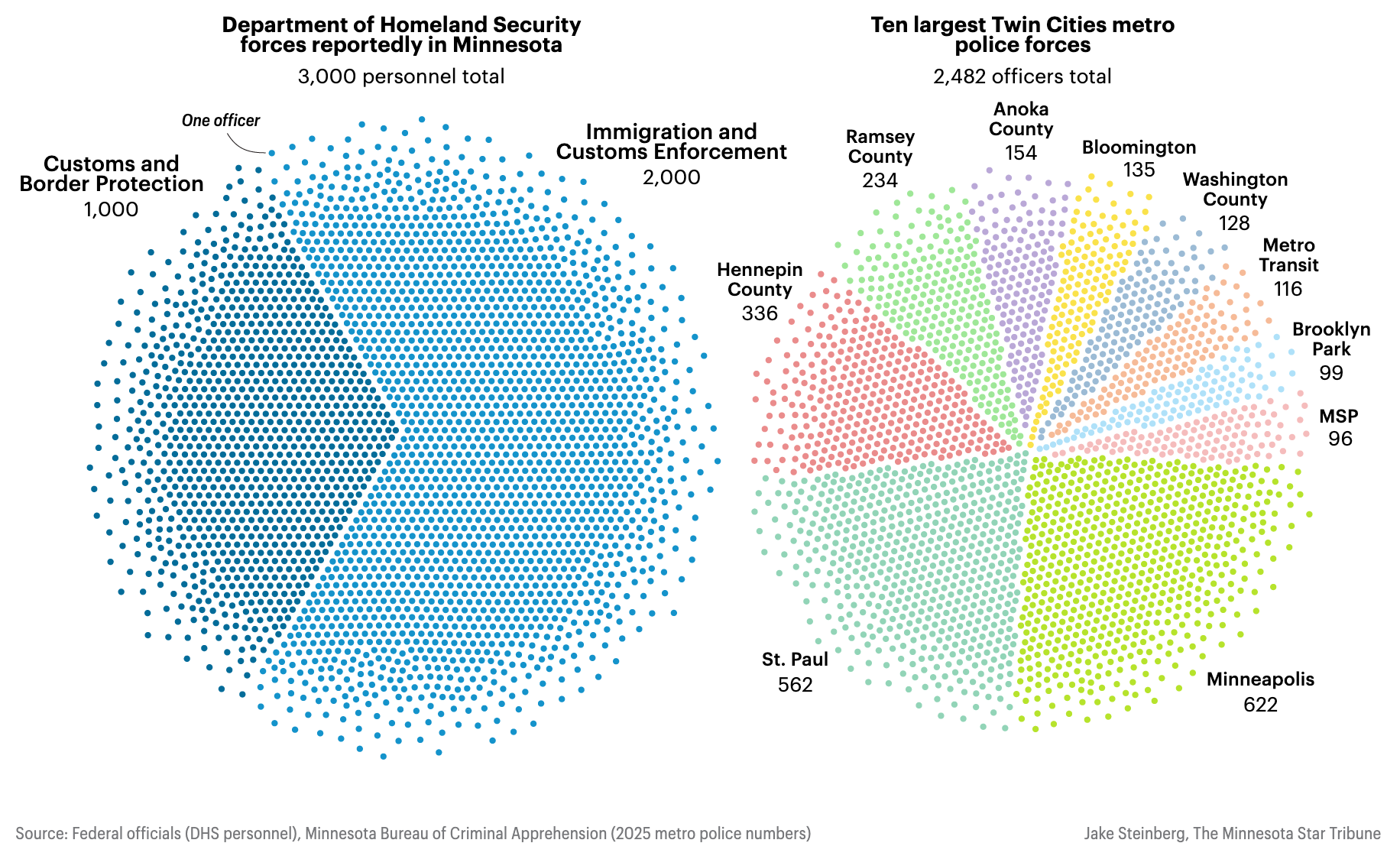 Like the Minnesota Star-Tribune's look at how local law enforcement in the Twin Cities is dwarfed by the federal presence.