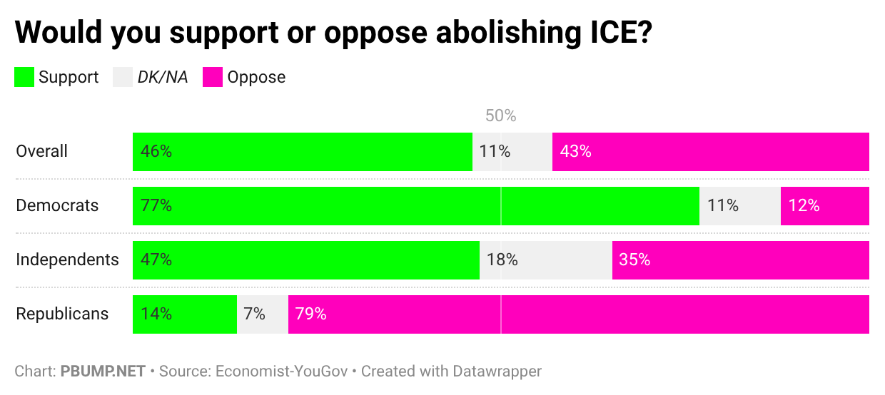 For my personal site, the estimable pbump.net, I looked at polling on ICE. For the first time (that I've seen), abolishing ICE has more support than maintaining it, though it's still under 50 percent.