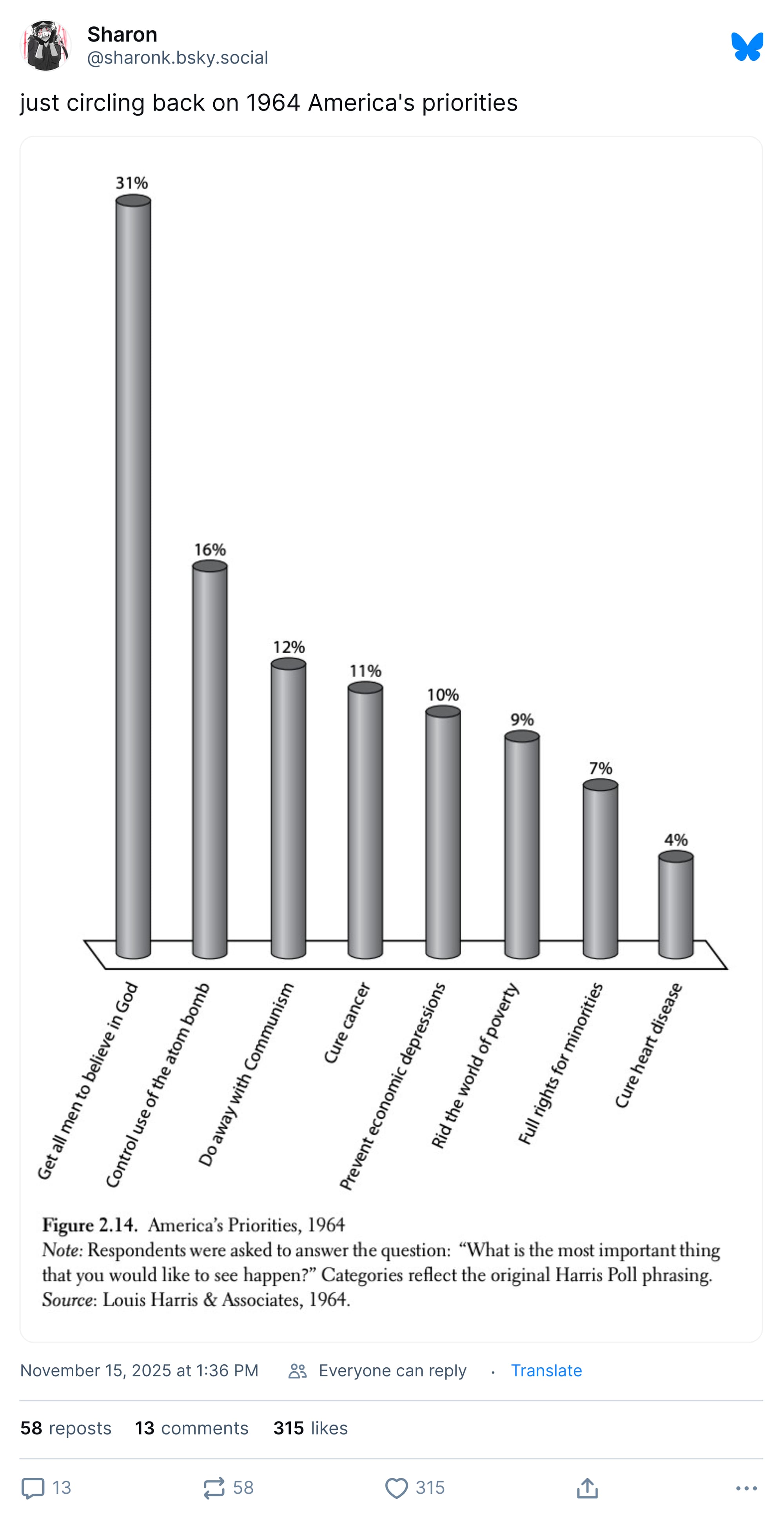 A Bluesky user reminded us that combatting the threat of communists (and Russia) used to be a top ten concern of Americans.