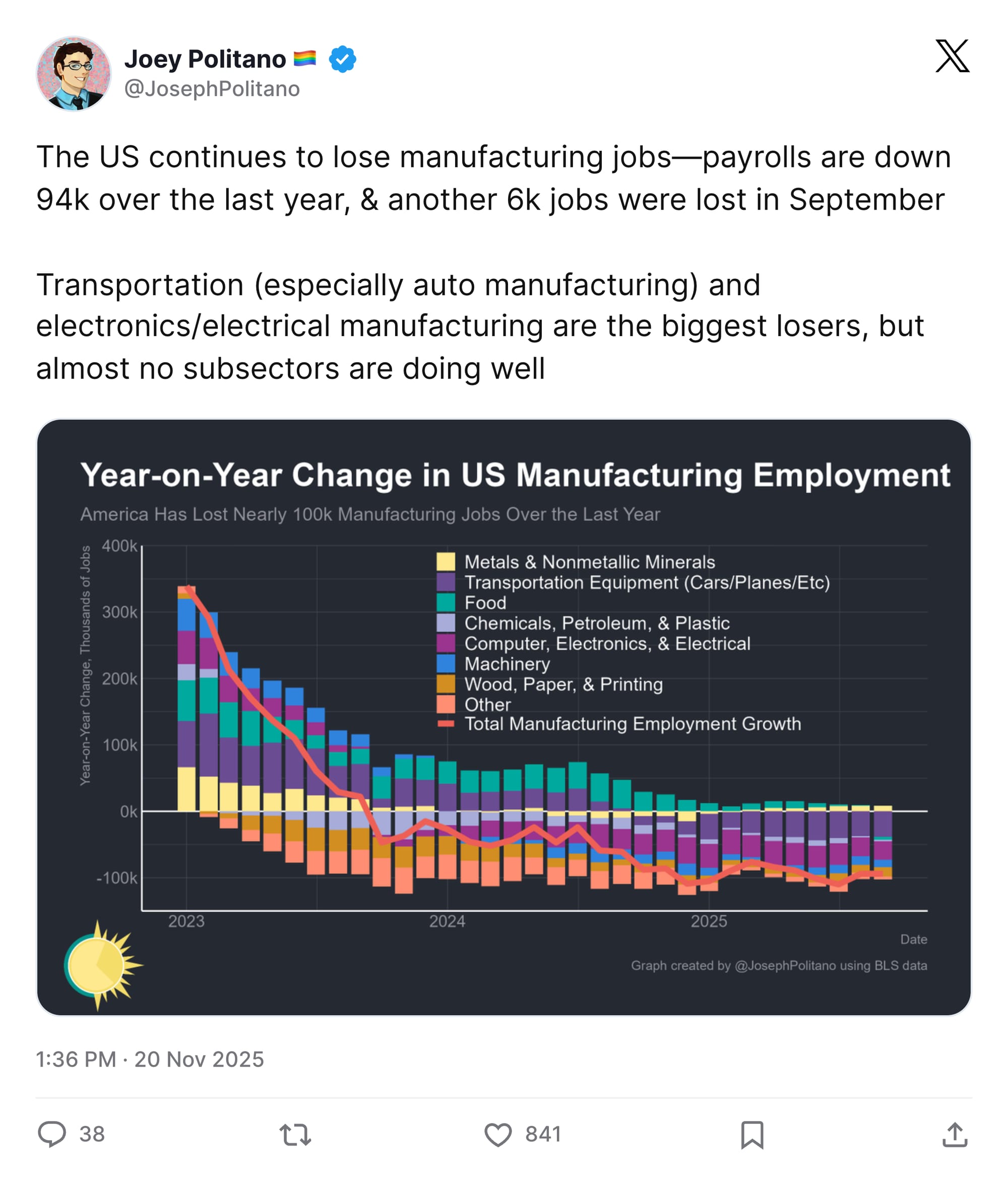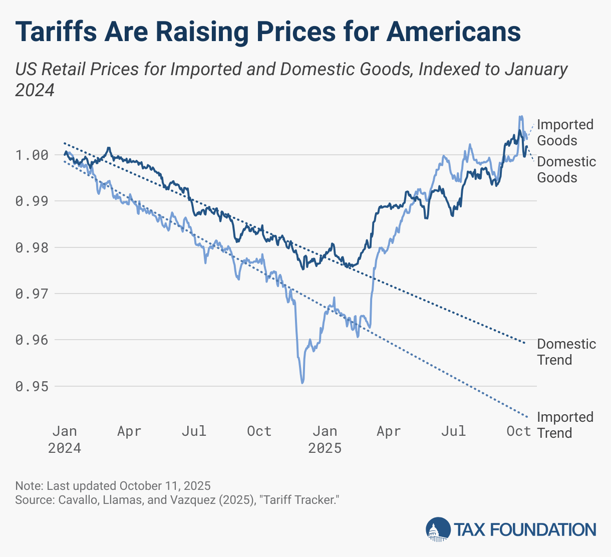 Sure, the tariffs are pushing prices higher. But they're also bringing back manufacturing jobs, right? Oh.