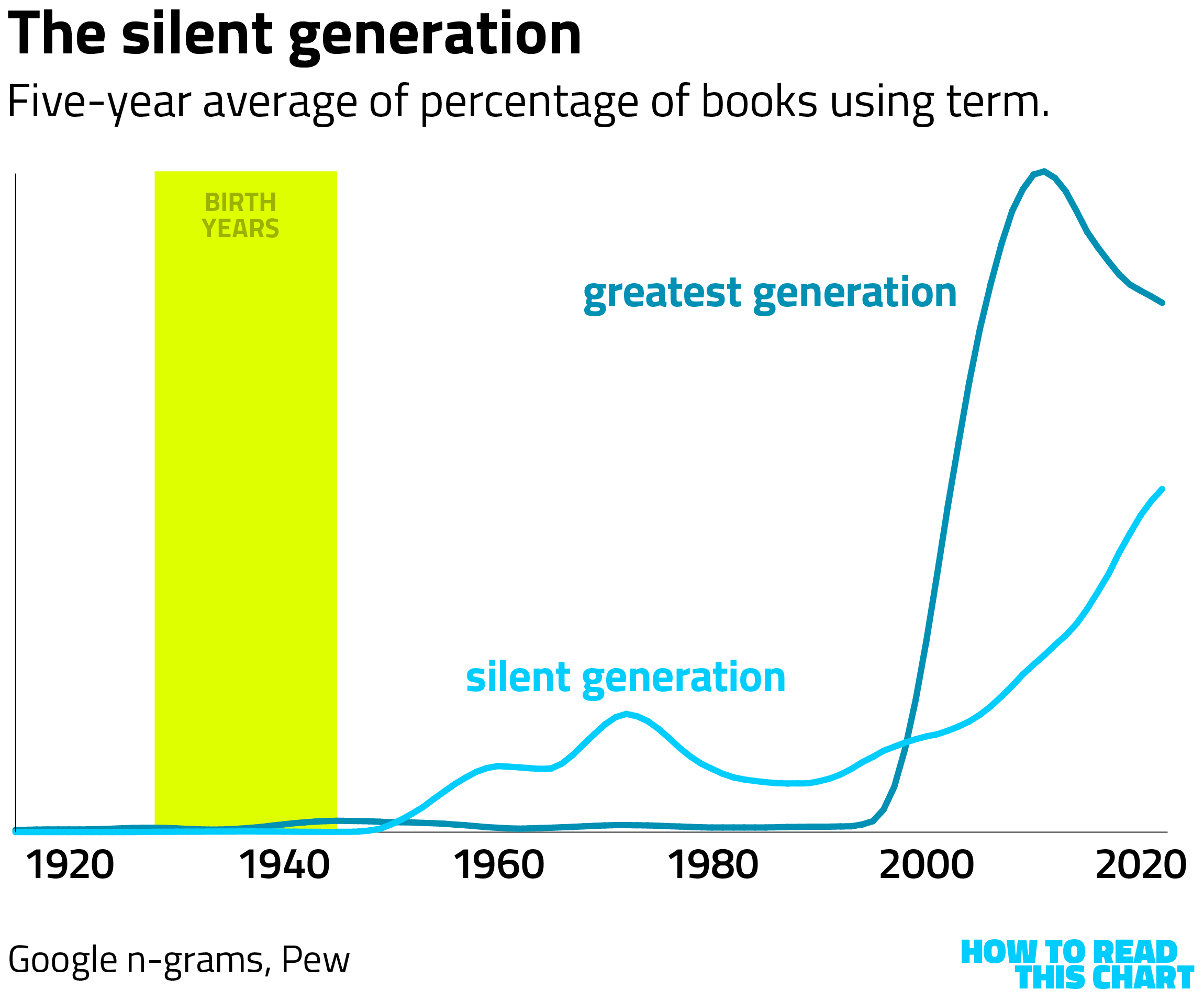 Consider the "silent generation," as bounded by Pew Research Center. That name arose in the middle of the 20th century but only really started to catch on about 20 years ago — even as it was already overshadowed by Tom Brokaw's "greatest generation."