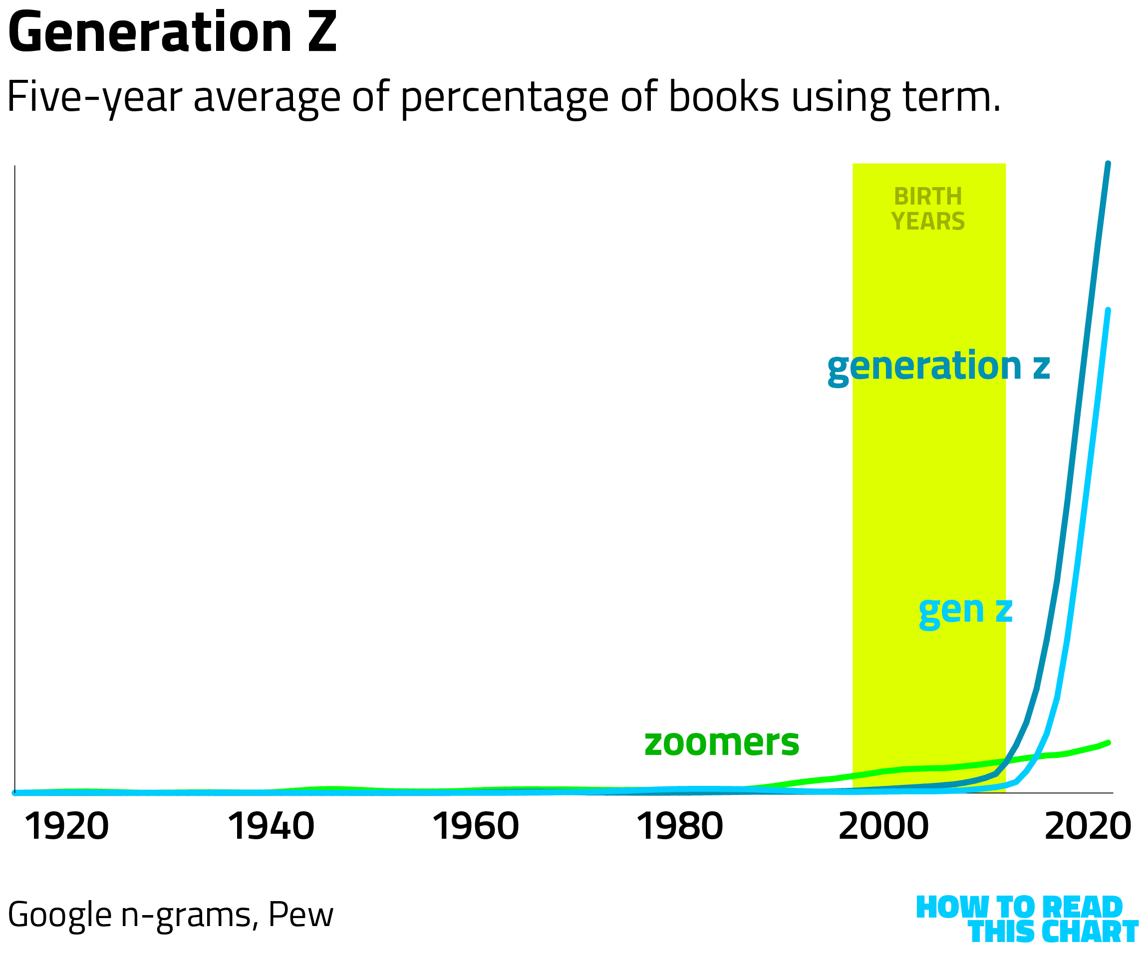 In contrast to the other generations, Gen Z was cemented quickly. Granted, we're still early on this one and some other name (like "zoomers") might surge past it in the decades to come.