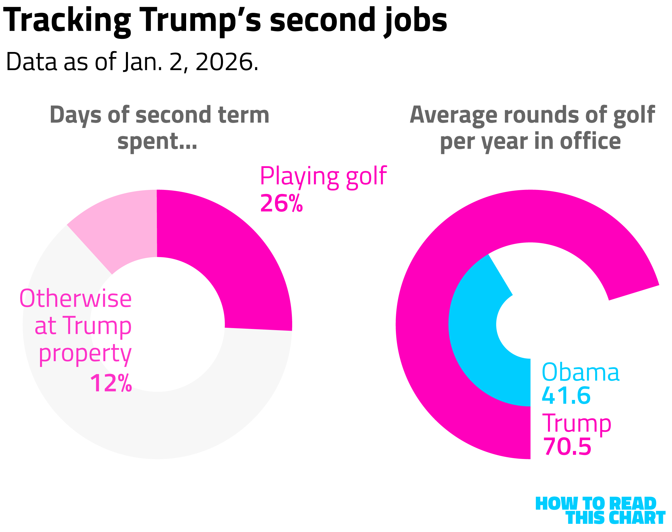 Last week, the (much shorter) iteration of this newsletter focused on how much time Trump had spent at his private properties and playing golf. I decided that, for 2026, I'd update those numbers weekly, since I'm tracking them anyway.