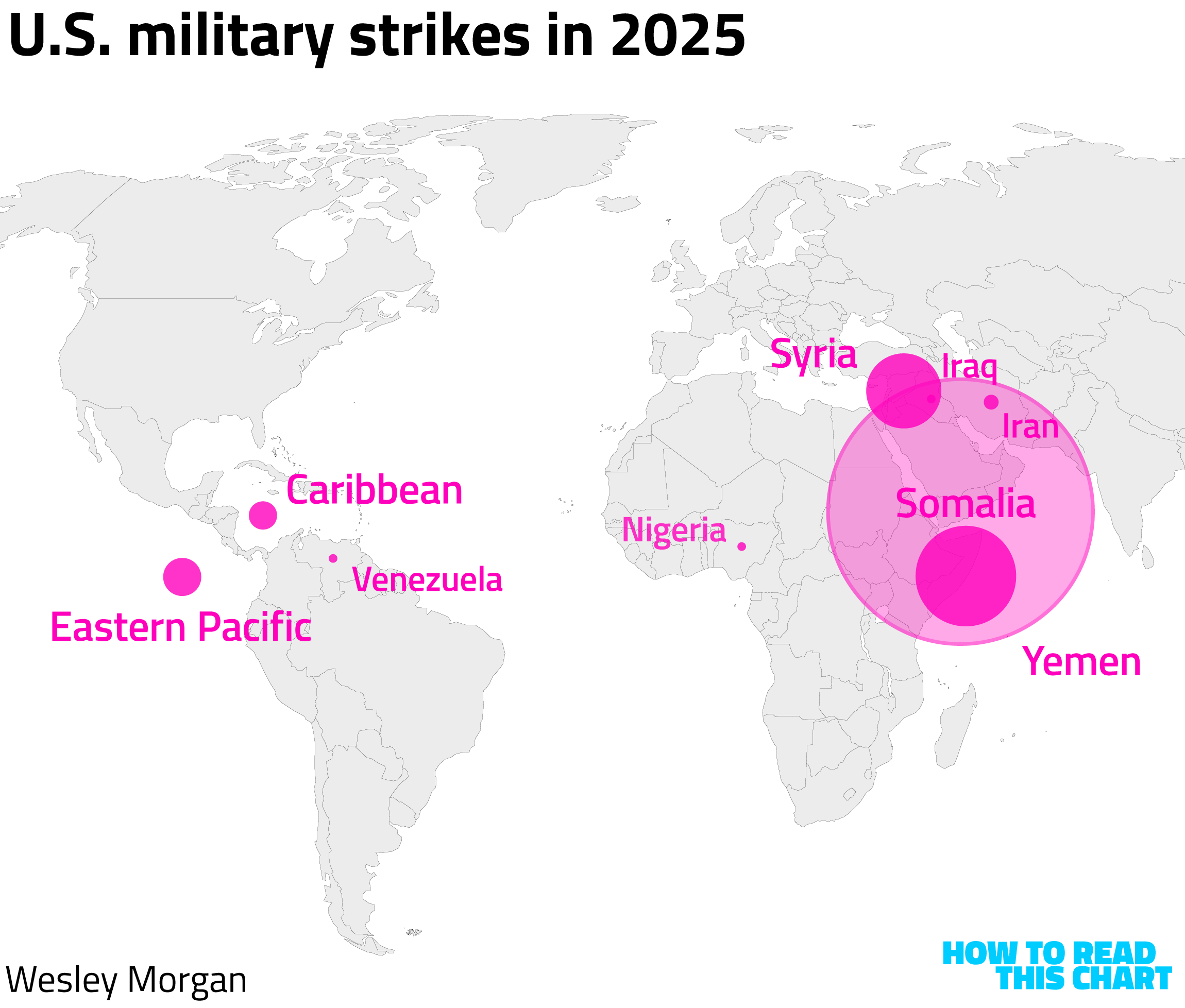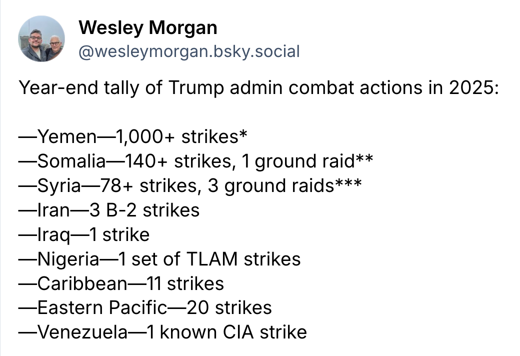 Author Wesley Morgan has been tracking the combat actions undertaken by the Trump administration. On Friday, he published his running total.
