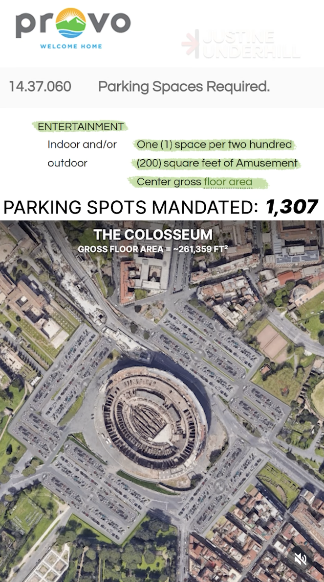 I appreciated this video showing what world landmarks would look like if subjected to the parking-space requirements of American (well: Provo, Utah) zoning requirements.