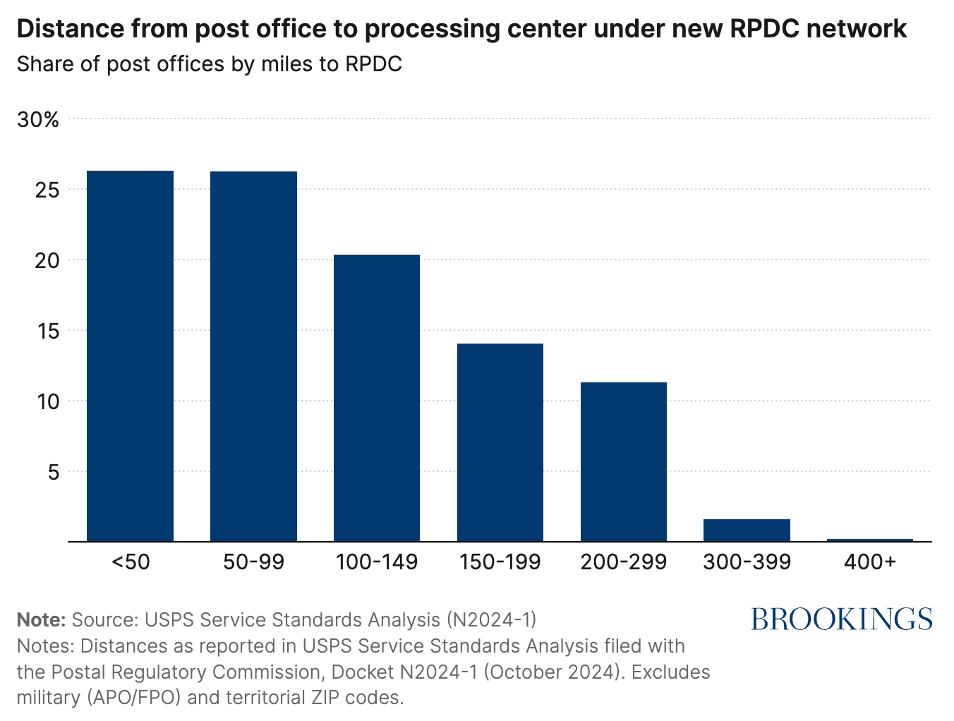 This Brookings chart of the distance to post-office processing centers isn't particularly exciting, but it does have potential ramifications for the midterm elections. (Click through to see how.) (You should always click through in general, obviously, but reminders never hurt.)