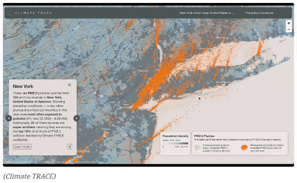 Like this animation, via CNN (click any image to see the source) showing plumes of pollution in the NYC area.