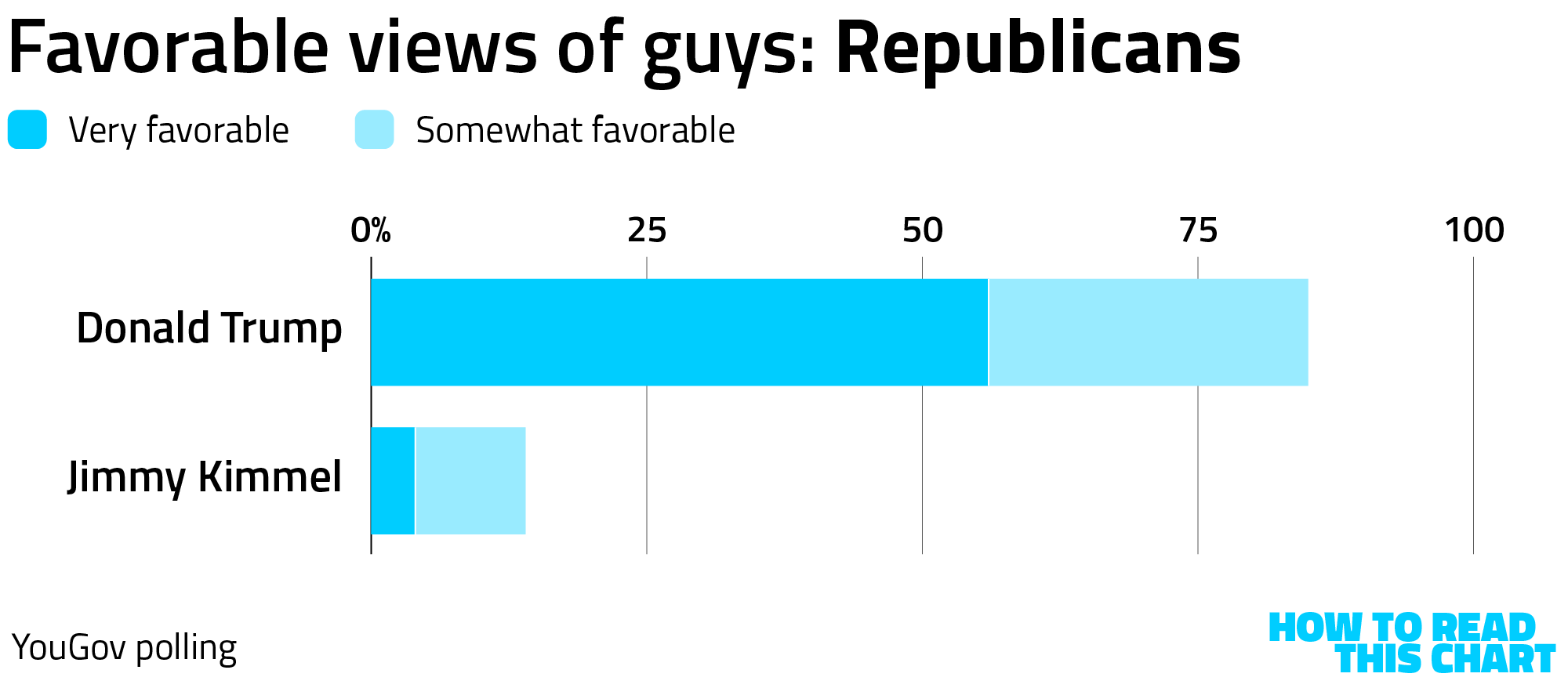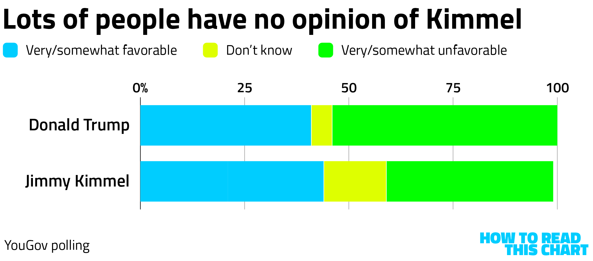 But there is a really important qualifier here that deserves to be mentioned. YouGov's poll allowed people to indicate that they had no opinion of either man, something that is admittedly easier to believe about Kimmel. The result, though, is that about 1 in 8 people didn't view Kimmel favorably or unfavorably.