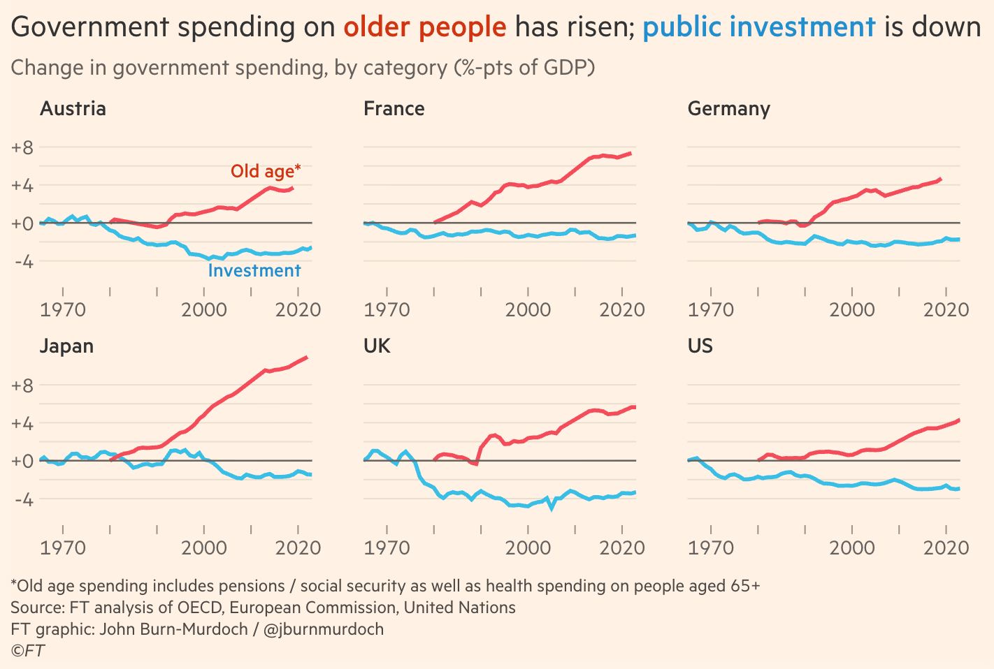 I debated putting the chart below in the "bleak" section, but it's really not that bleak. It is, in part, a function of there being more old people, something I wrote a book about.