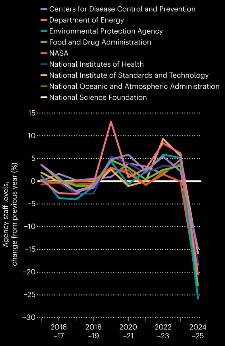But he has also dramatically slashed staffing in federal public health agencies. Great!