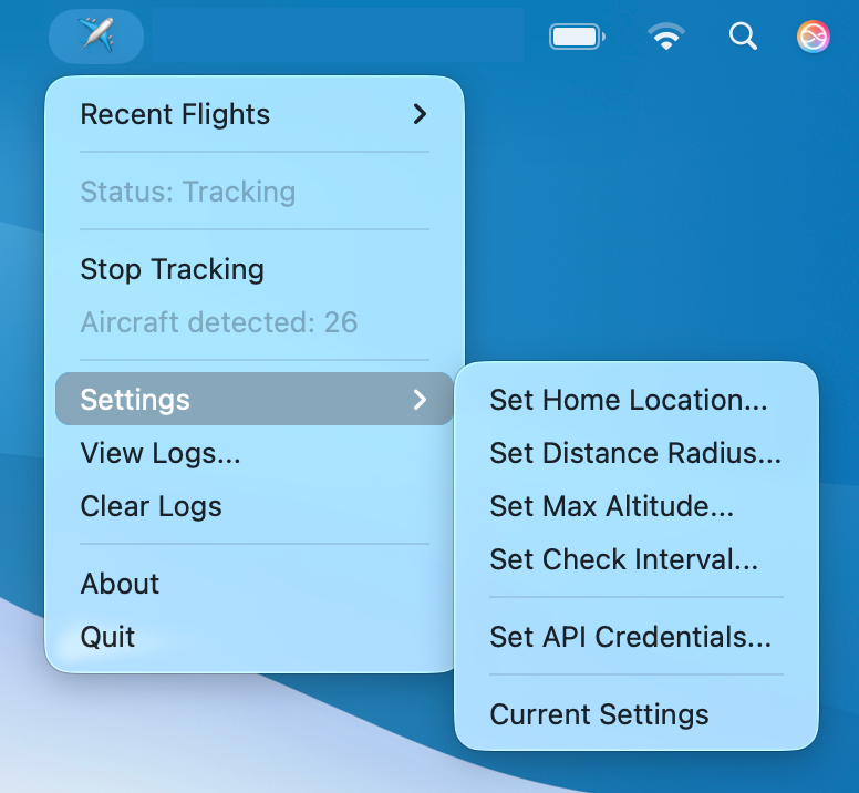 Earlier this week, though, I had an idea: What if I asked Claude to track what planes flew over my house? So I asked it to create an app that would sit in my laptop's menu bar and do that: take my location and, within a certain radius and elevation, check for the appearance of planes. Over the course of an hour or two, I had a self-contained application that did exactly that.