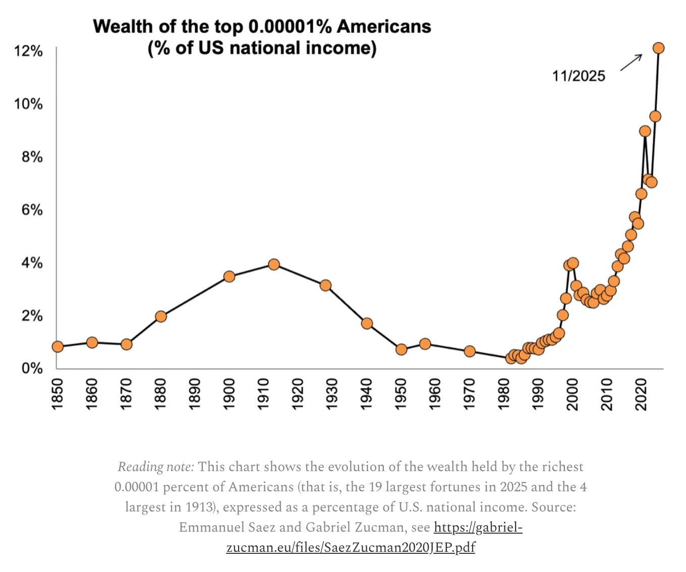 The wealthiest hundred-thousandth of Americans, incidentally, earn around one out of every eight dollars distributed as income. That's cool!
