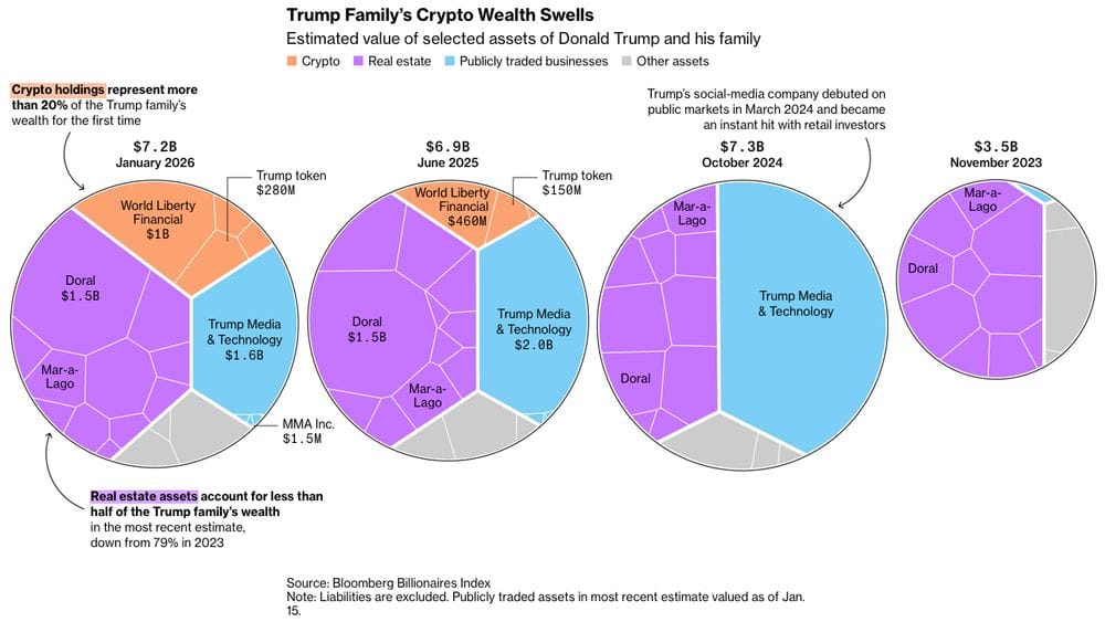 Since Donald Trump's inauguration last year, his family has added nine figures of wealth from the crypto industry that he helps regulate. Awesome!