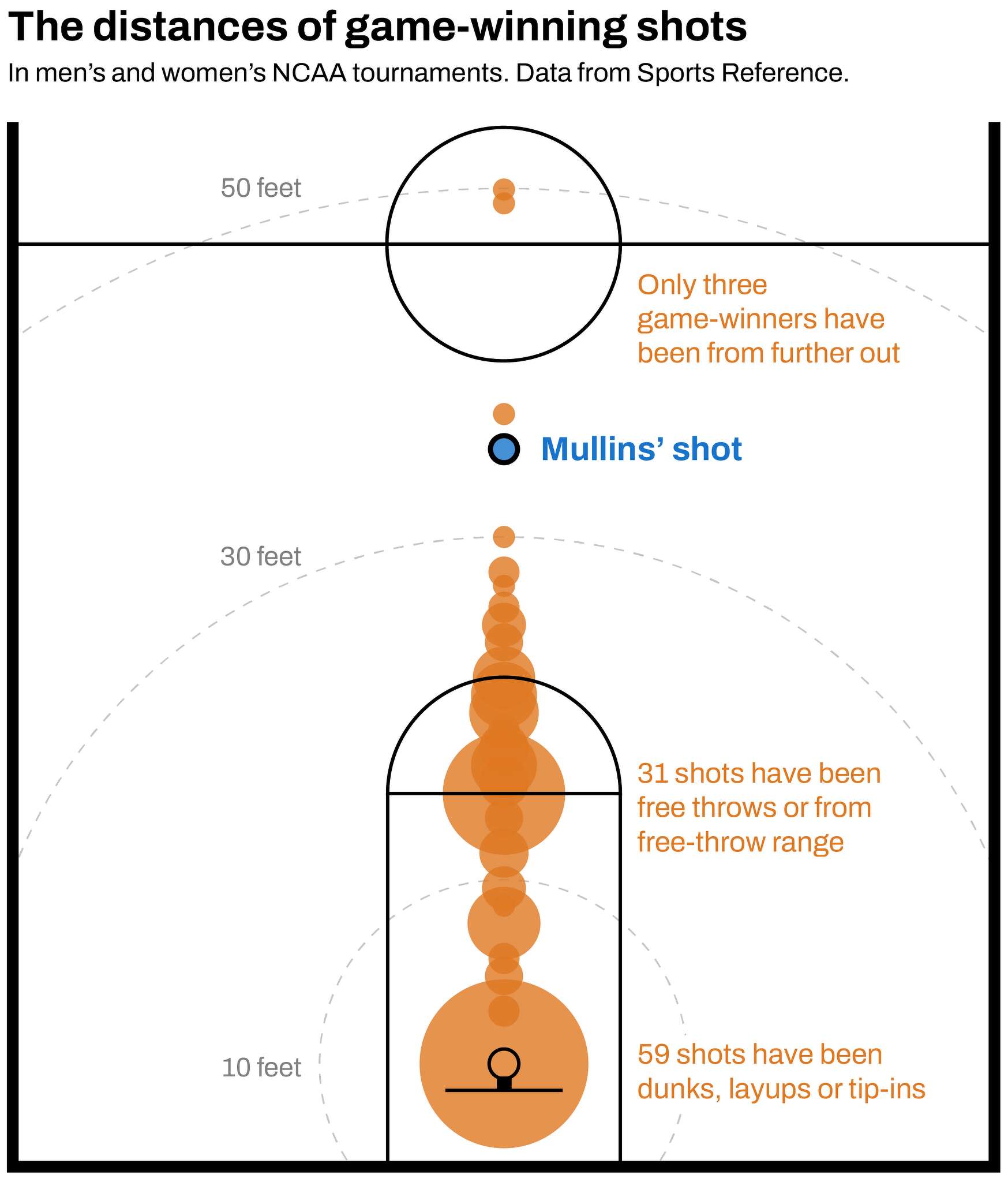 It includes, for example, this chart of the longest game-winning shots in NCAA tournament history, the fourth-longest of which knocked Duke out of this year's bracket.