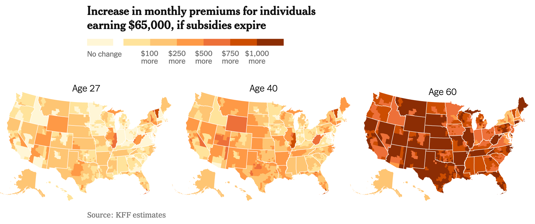 From the New York Times, we get this look at how much Obamacare premiums are set to rise. This is based on data from KFF, which Trump administration official Dr. Oz (sigh) told reporters had been retracted which (sigh) they had not been.