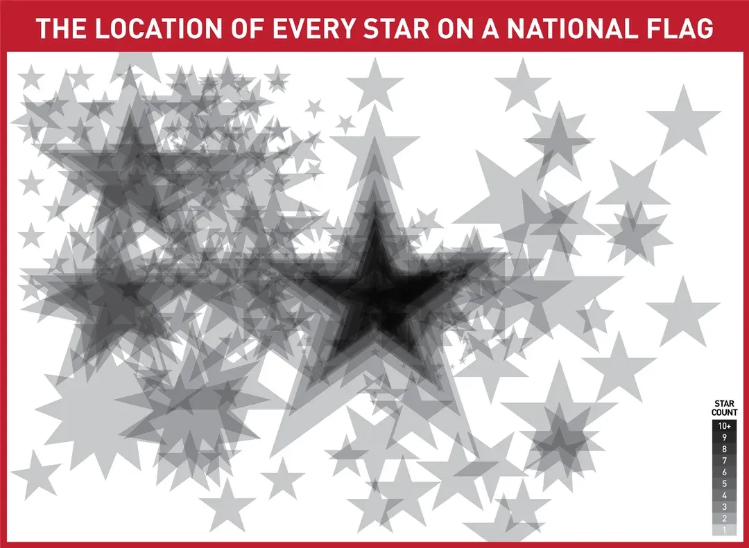 Reader Lynnette Haggerty passed along this great visualization, showing the density of stars on national flags.