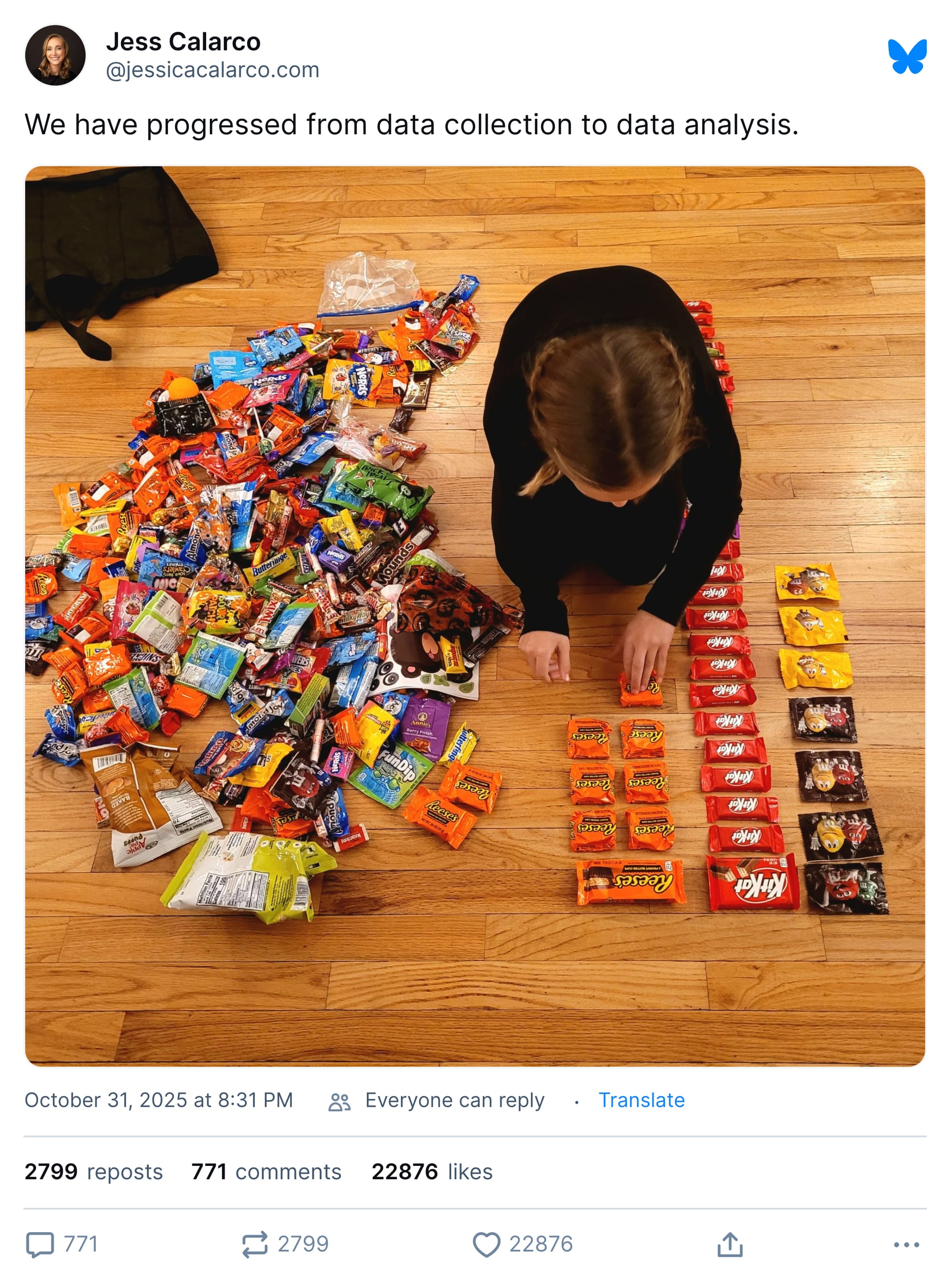 You are receiving this email, incidentally, on one of the busiest days each year for bespoke food-related data visualizations. Over the past 24 hours, scenes like the one below unfolded across the country, including in my own living room.