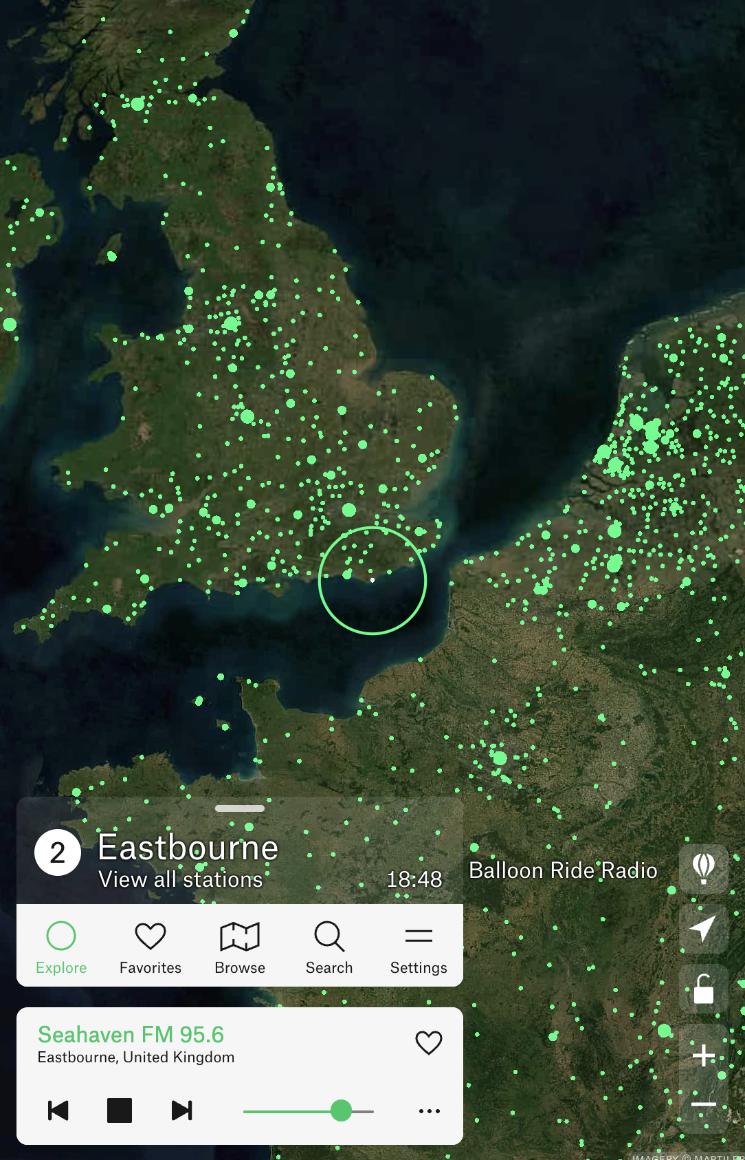 In order to take the screenshot above, I zoomed over to the U.K. and clicked a station at random. When I tuned in — and this is true — it was playing "White Christmas."