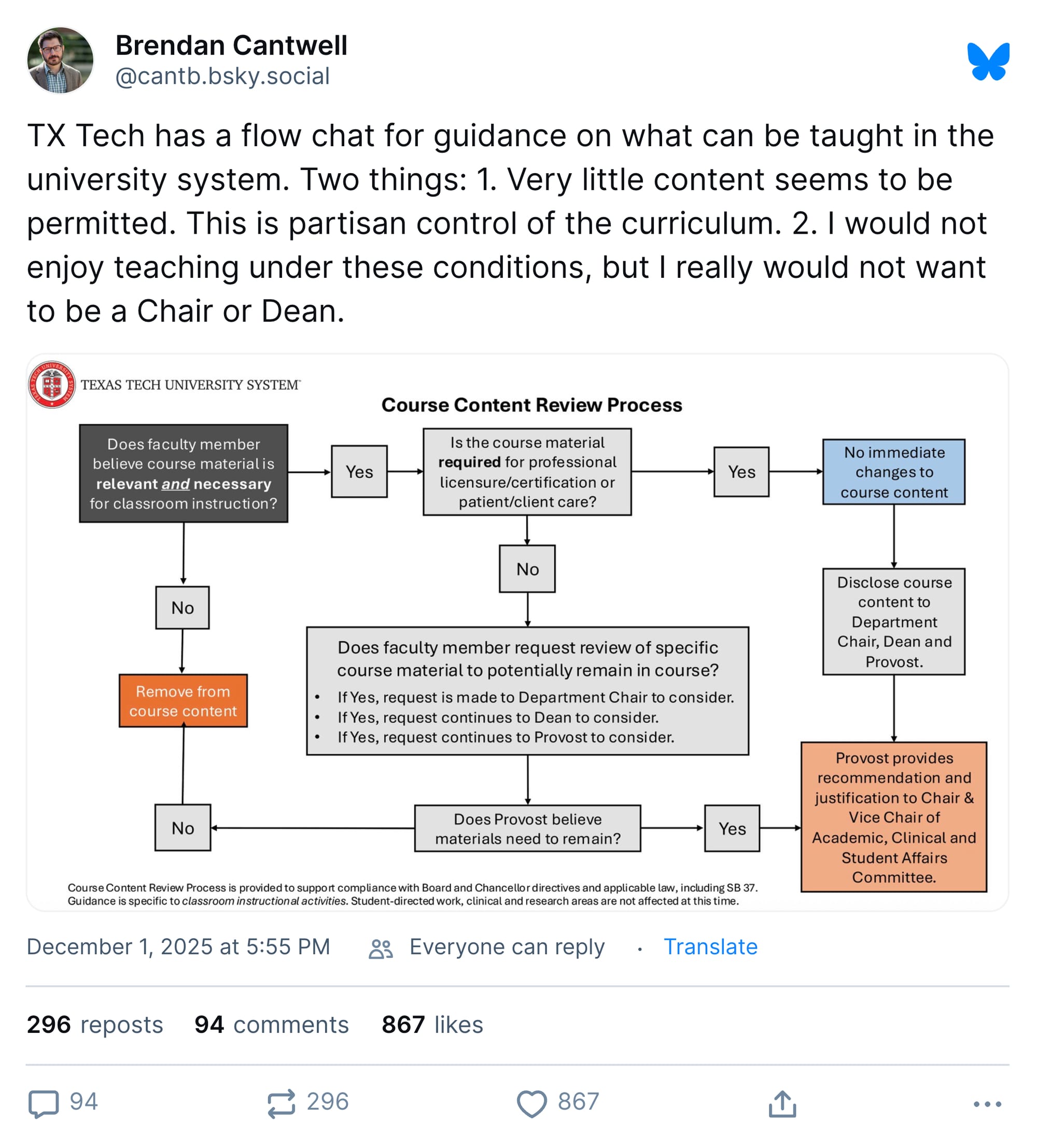 Texas Tech, meanwhile, has created a flowchart by which it seeks to ensure that professors aren't engaged in wrongthink.