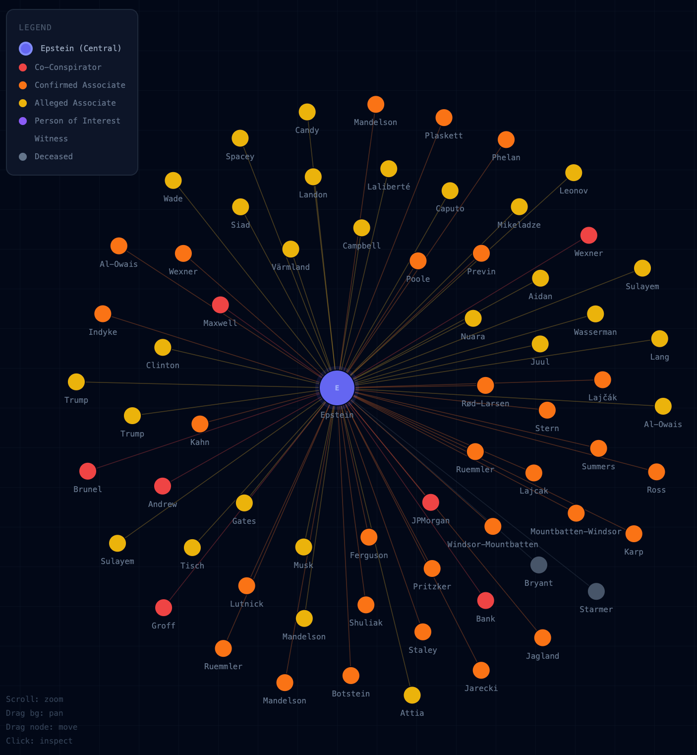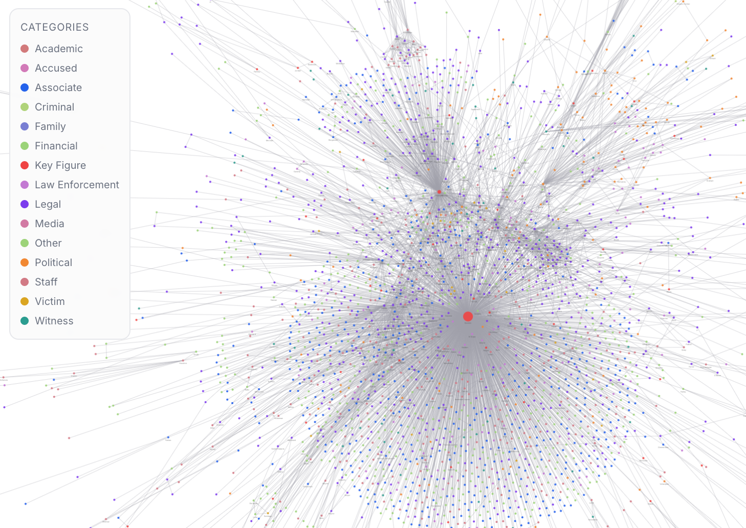 What I was interested in, you might not be surprised to learn, is the pattern of interactions between Epstein and others that emerge from the released material. I started trying to build out a network visualization of those connections before realizing that I'd probably been beaten to the punch.