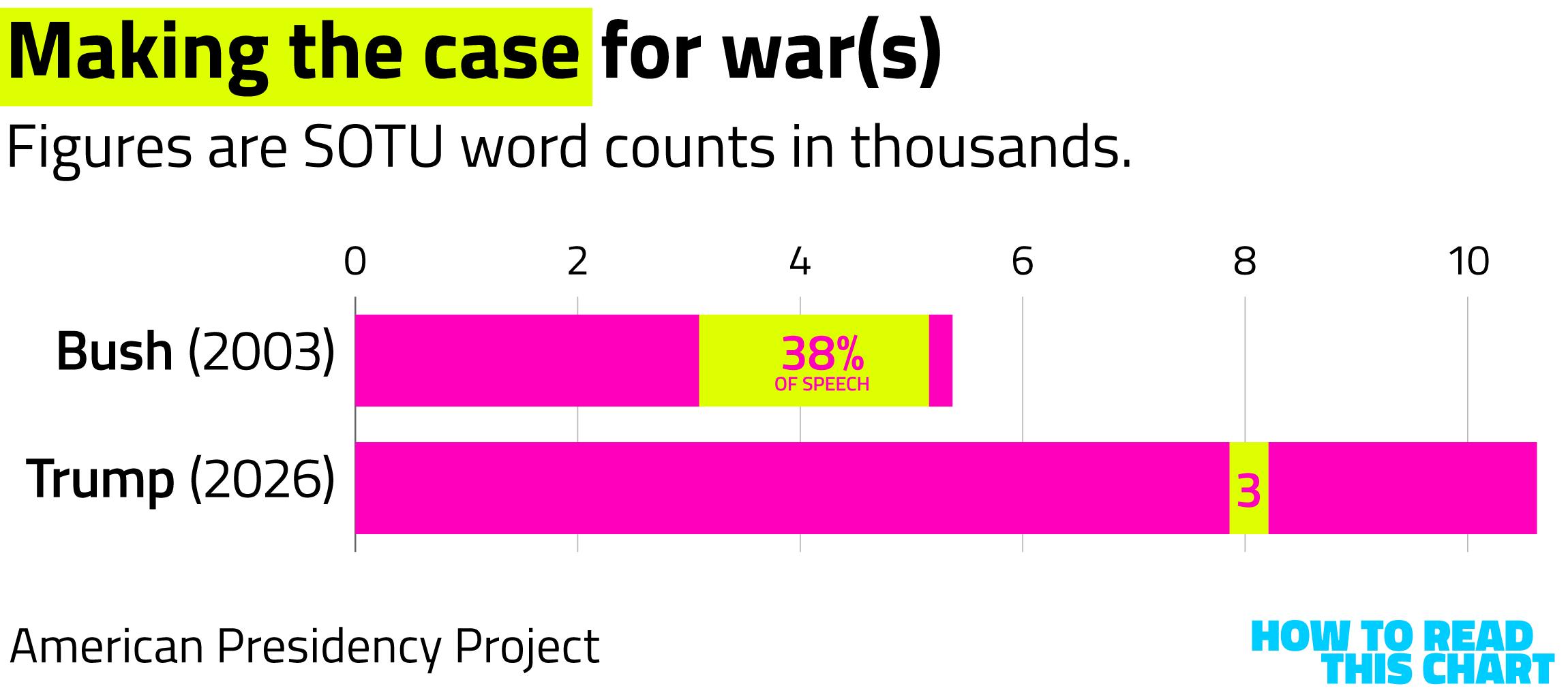 It's the most relatable thing in the world: You've just put your weekly data-visualization newsletter to bed when the president of the United States unilaterally decides that the country is going to launch a war against a foreign country. Not much to do but throw some charts together!