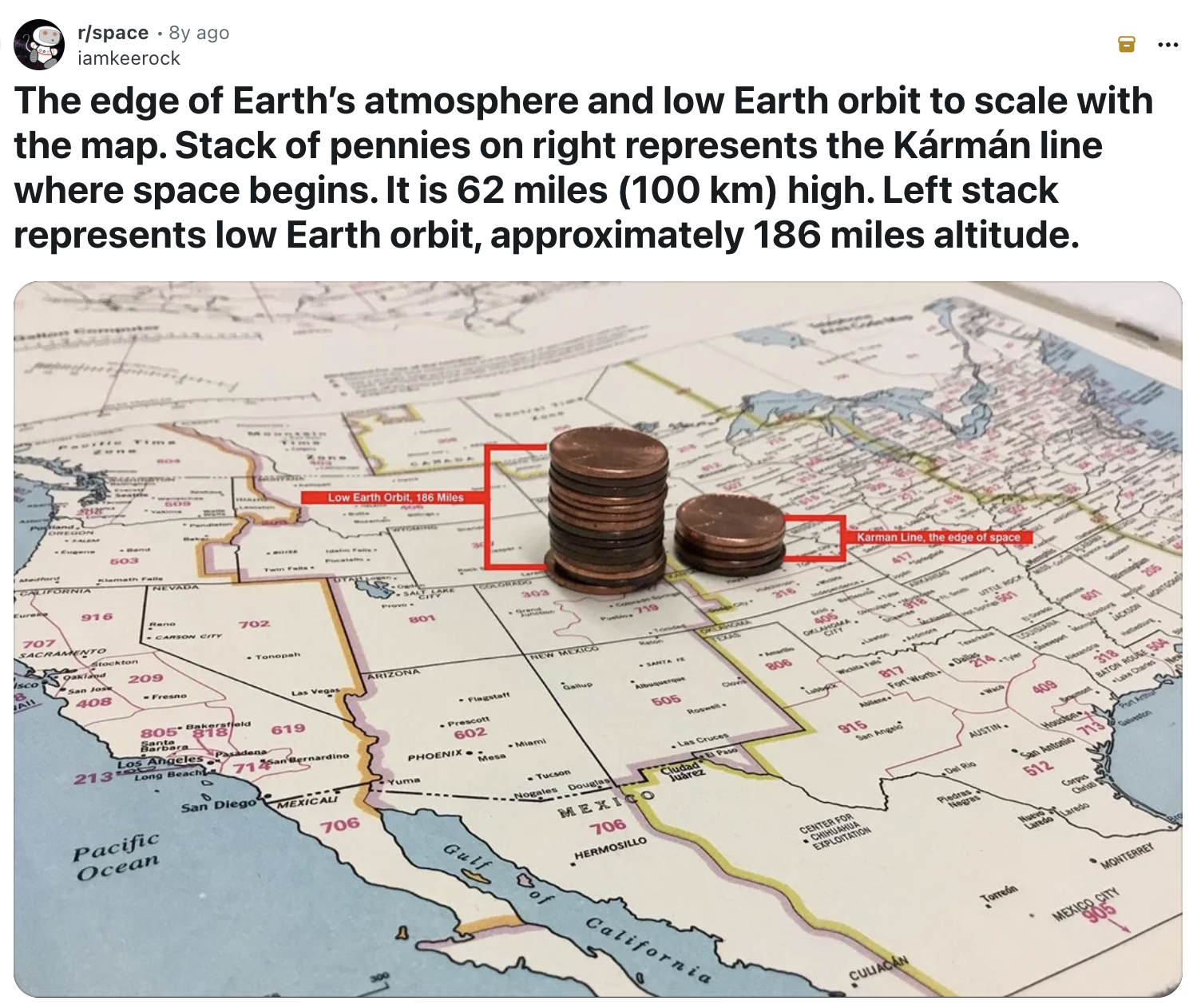 And here is an (old) (but effective) visualization of how thin the Earth's atmosphere is.