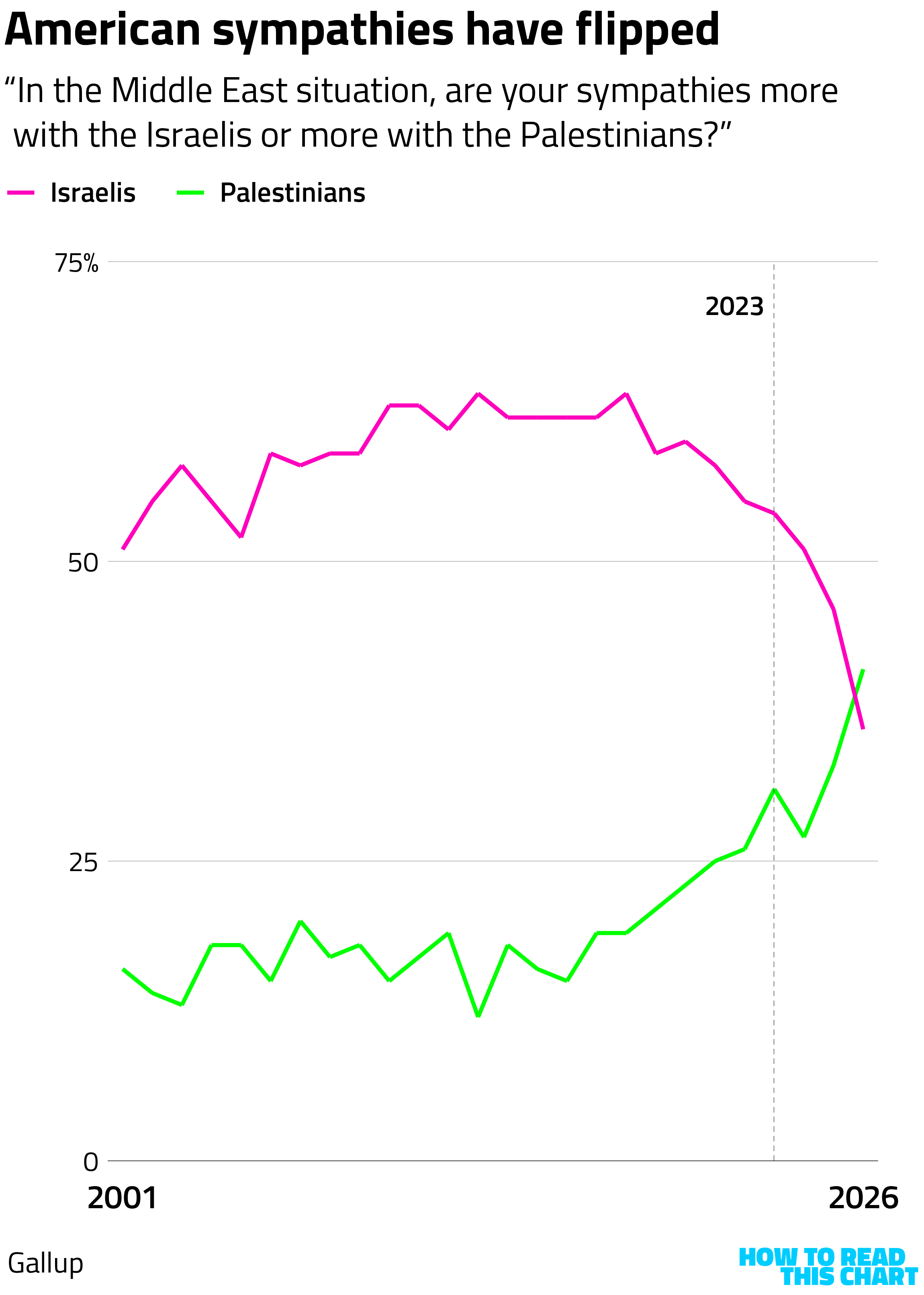 For decades, Americans were generally much more sympathetic to the Israeli side in its tensions with Palestinians. This year, though, Gallup found that Americans are now more sympathetic to the Palestinian side.