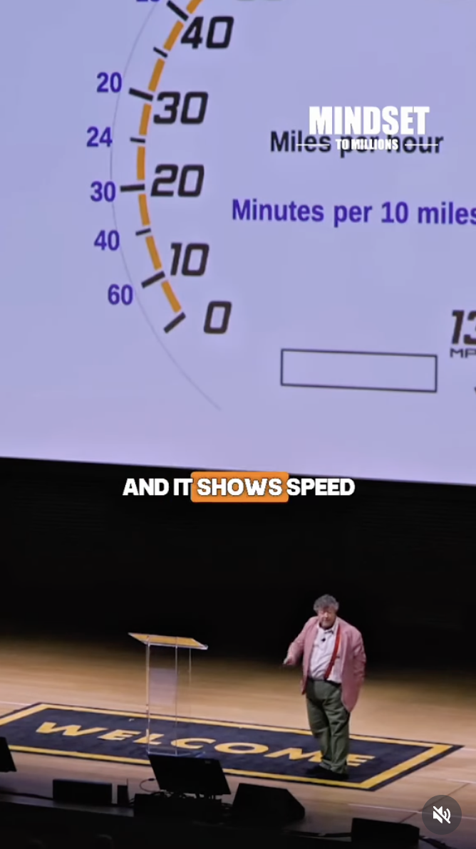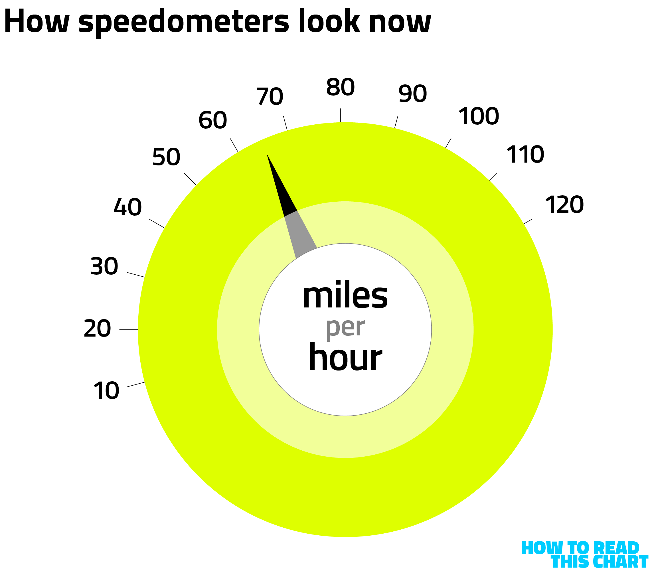 Sutherland's point is that speedometers don't have to show miles-per-hour and, in fact, that in doing so we may be encouraging misunderstandings of how speed works. Sure, distance equals rate times time, so we tend to show distance per time in order to illustrate rate of speed, as on the example below (in case you've never been in a car).