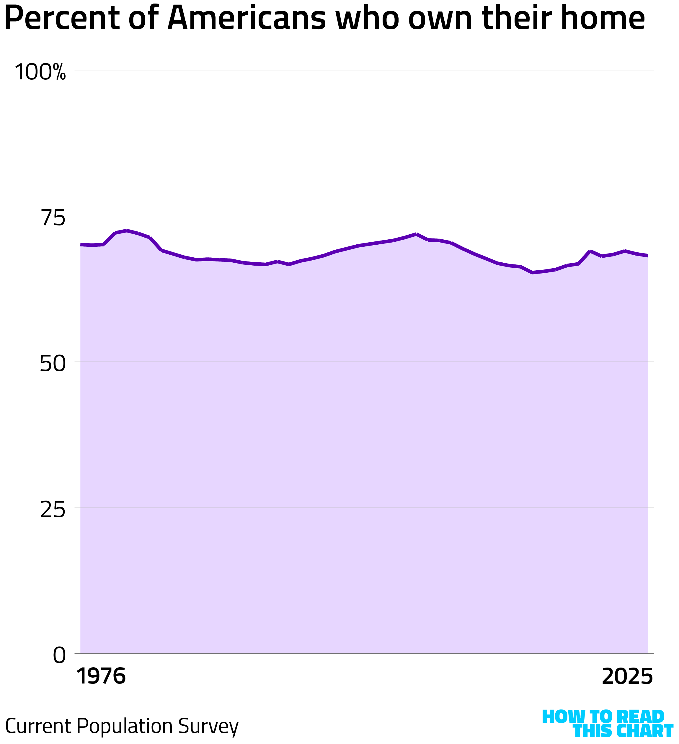 Using the excellent repository of Census Bureau information at IPUMS.org, I grabbed data on home ownership in the U.S. over time. Most Americans live in homes that they own or for which they have a mortgage. But many do not.