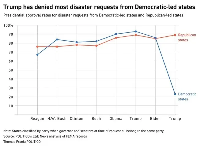 Politico this week charted the extent to which federal disaster response is politically polarized.