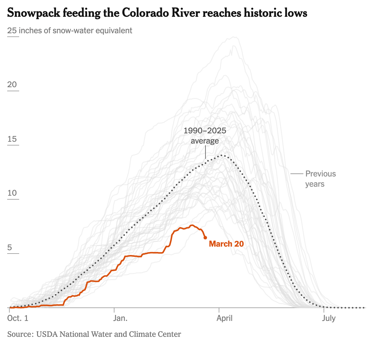 The bad news isn't solely a function of the federal government. An exceptionally warm Western winter has meant much less snow to be turned into snowmelt over the course of the year.