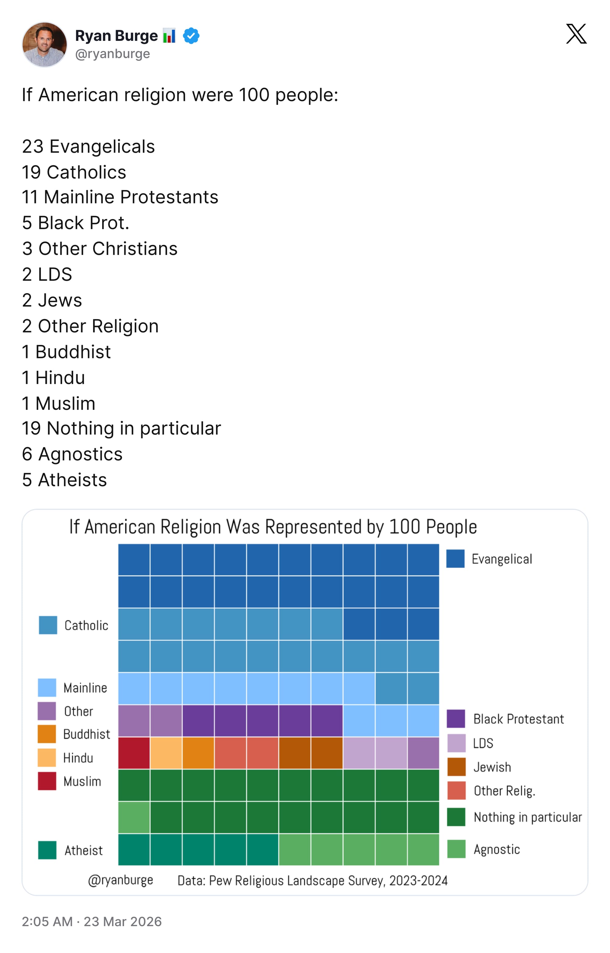 And Ryan Burge once again created a terrific visualization of American religion. (This religious diversity is the sort of thing that brought a lot of people to America in years past, you might recall!)