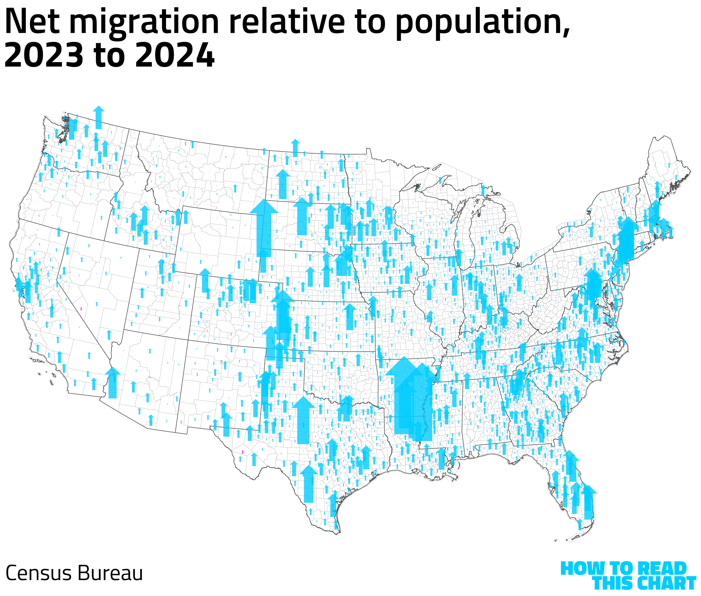 When we plot the change net migration rates by county, the pattern is clear.
