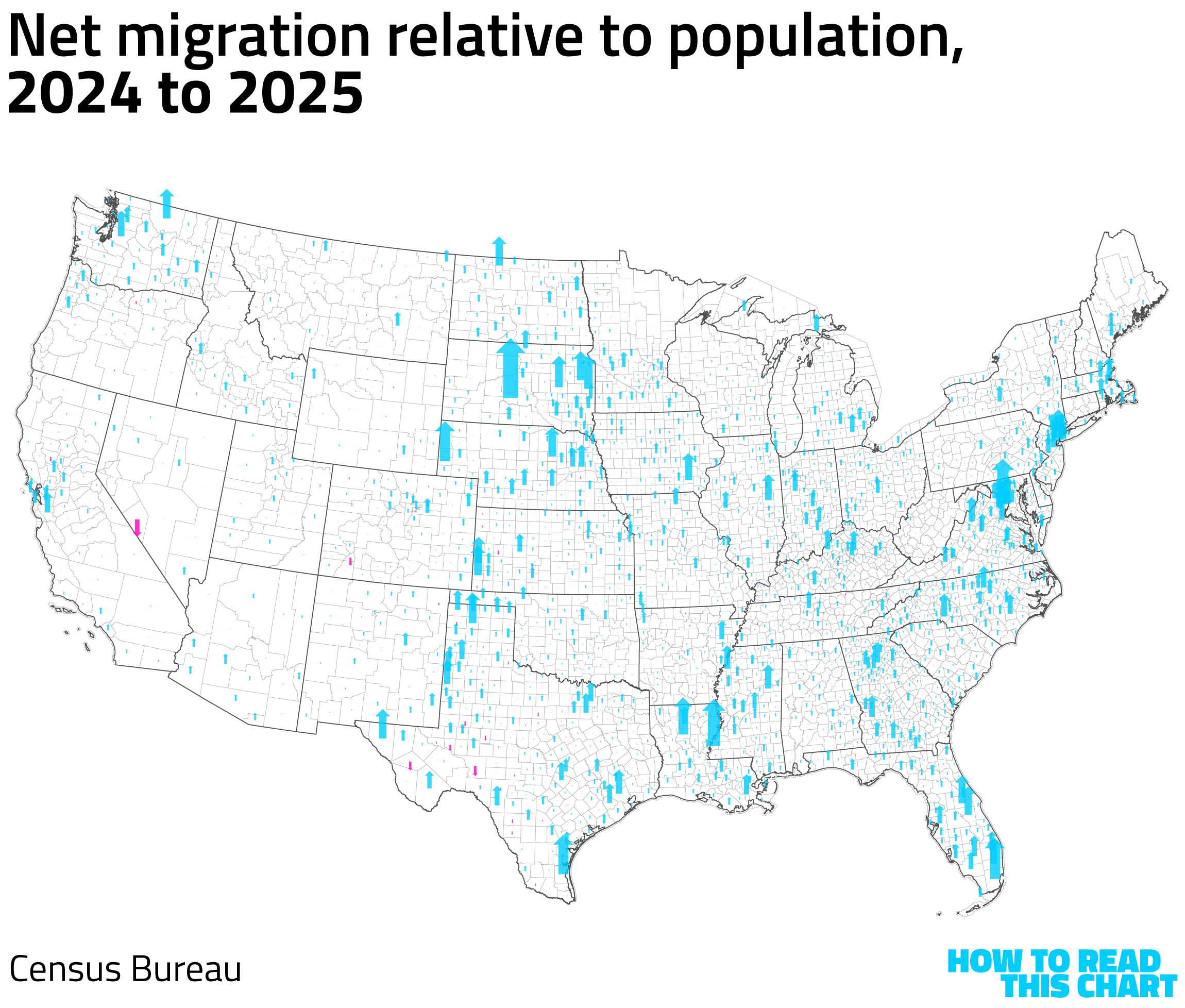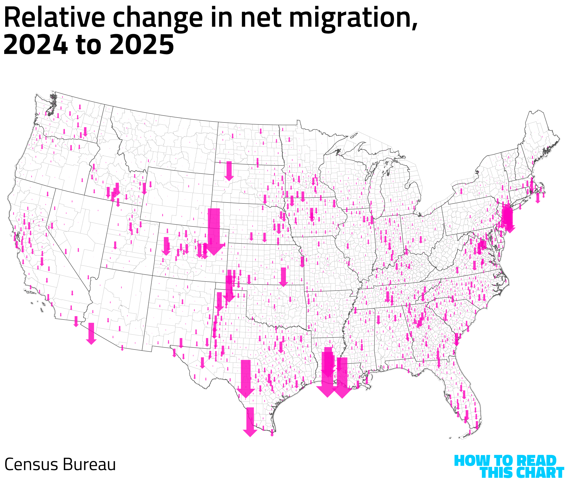 You can see the difference. In most places, net migration was still a positive, but it fell dramatically from 2024 to 2025.