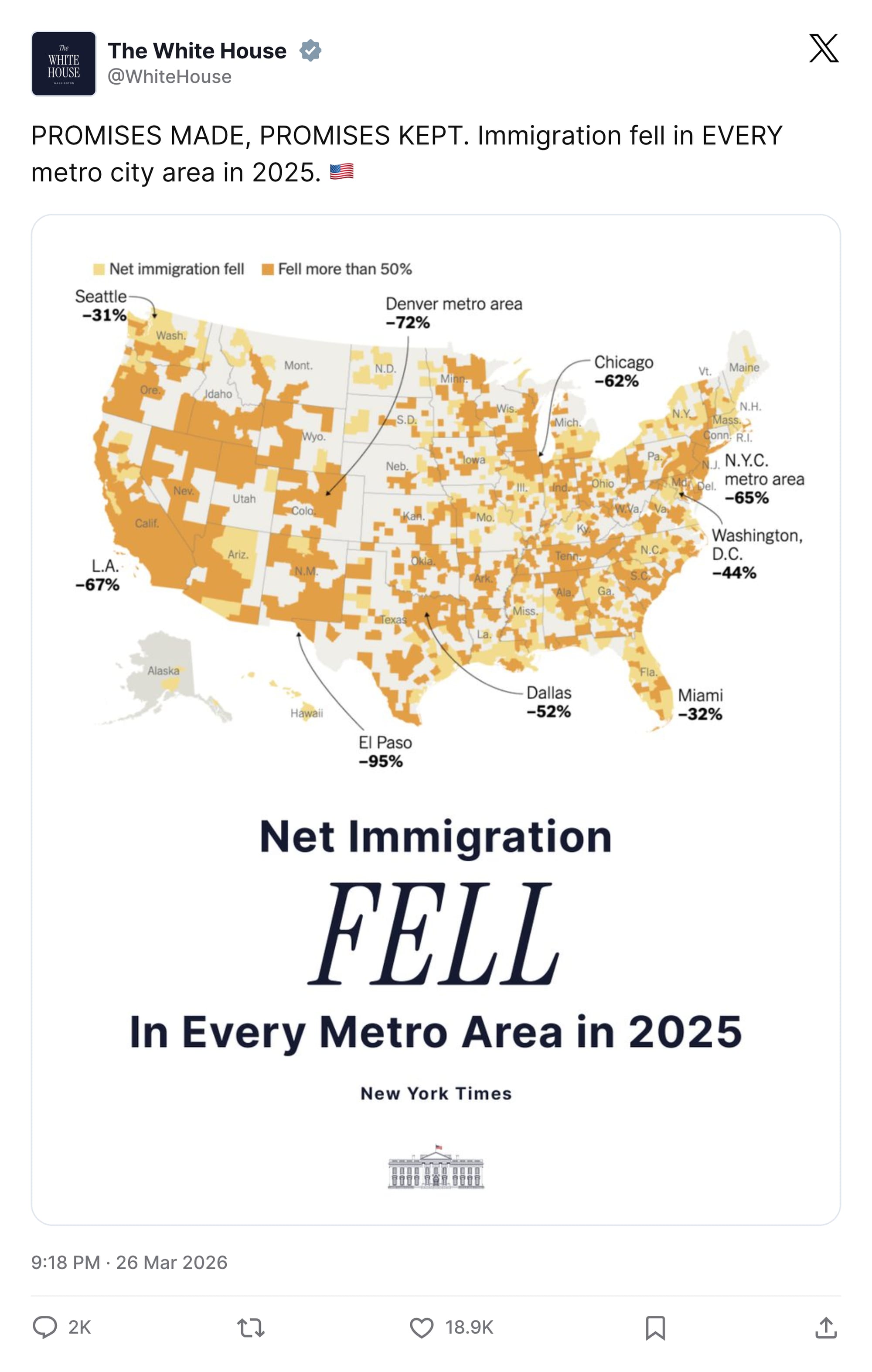 This week, the White House celebrated new Census Bureau data showing that net immigration (those arriving minus those leaving) had fallen relative to 2024.