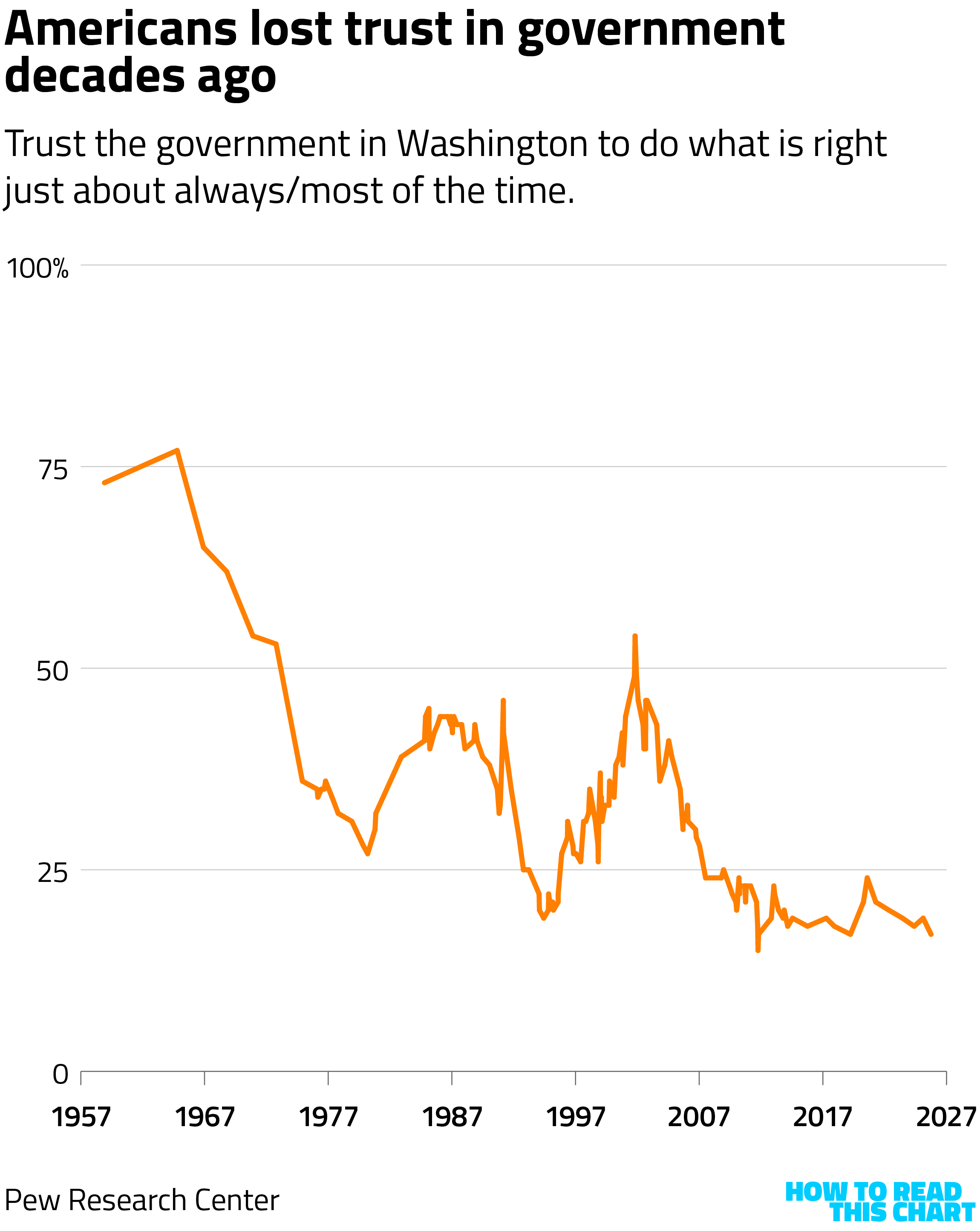 That's not me casting aspersions about you; obviously you have the good sense to be interested in data visualizations and this newsletter so I can hardly criticize your judgment or values. I'm simply commenting on the fact that most Americans don't have that confidence and haven't for the past few decades (at least).