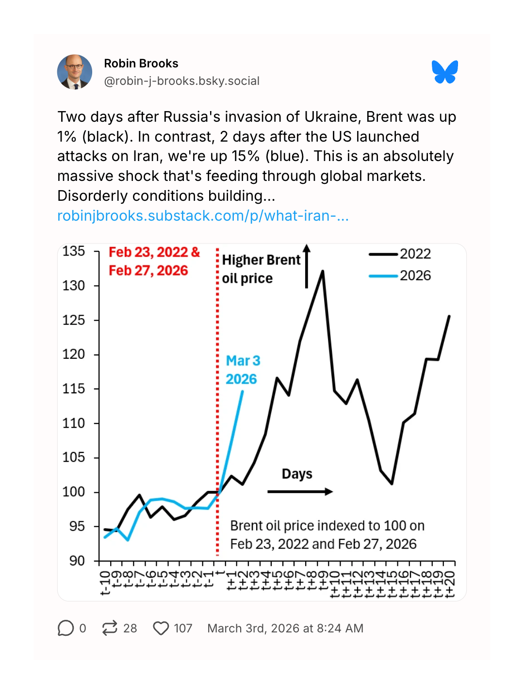 …which is a central reason that oil prices are spiking even faster than they did at the outset of Russia's expanded invasion of Ukraine.