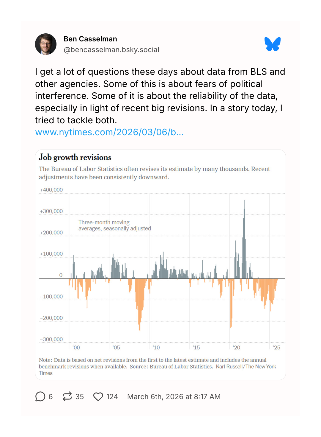 Here at home, Friday gave us a lousy jobs report — a reflection of the reality (covered by the Times's Ben Casselman) that the federal bureau responsible for collecting this data is still doing so in an objective way.