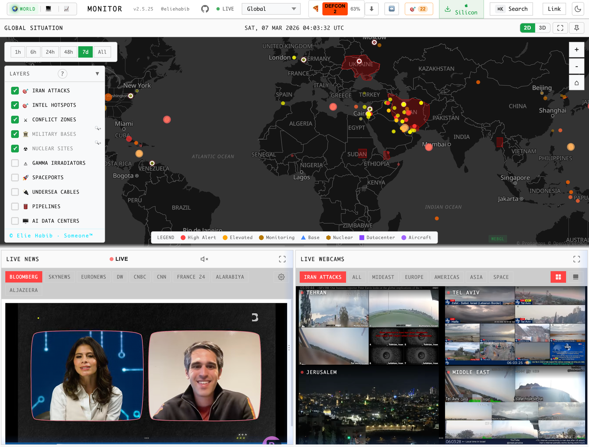 Called (appropriately enough) World Monitor, the tool compiles a wide range of publicly available information — news feeds, news broadcasts, webcams, AI-driven analysis — into one busy, apparently-intentionally-overwhelming dashboard.