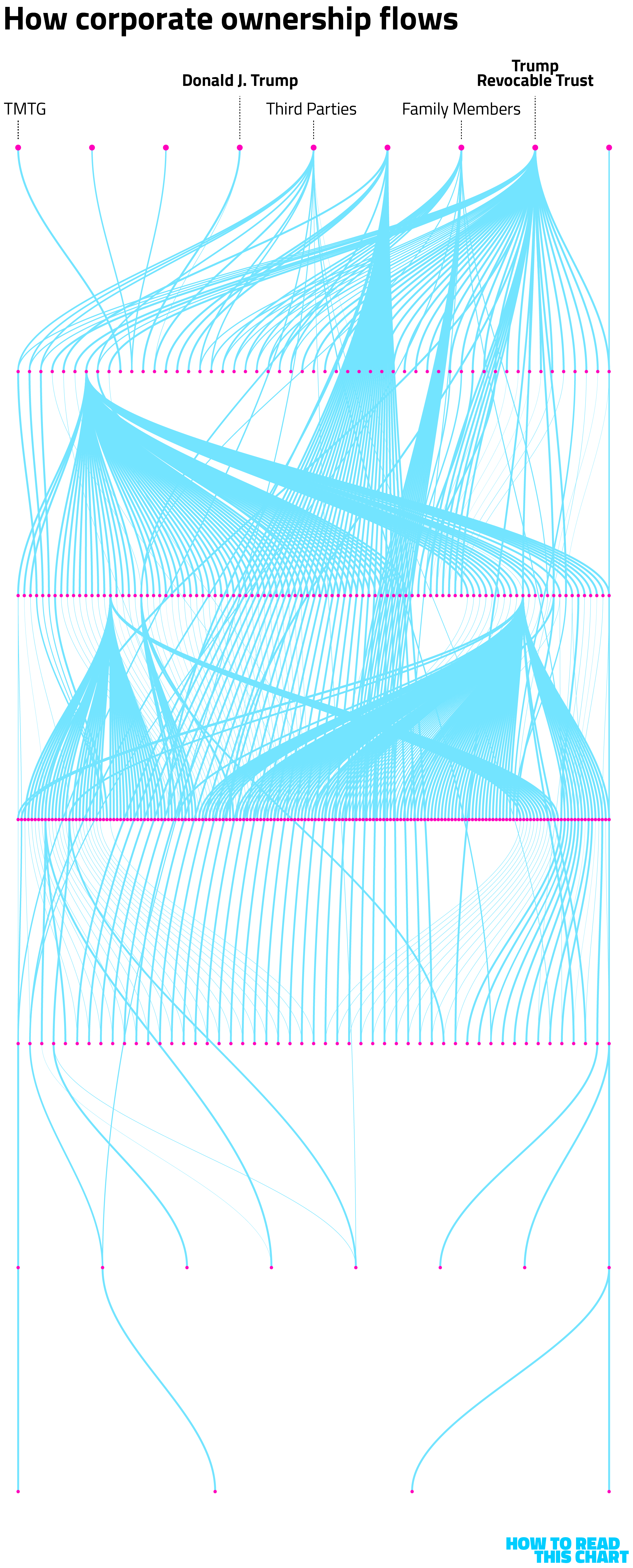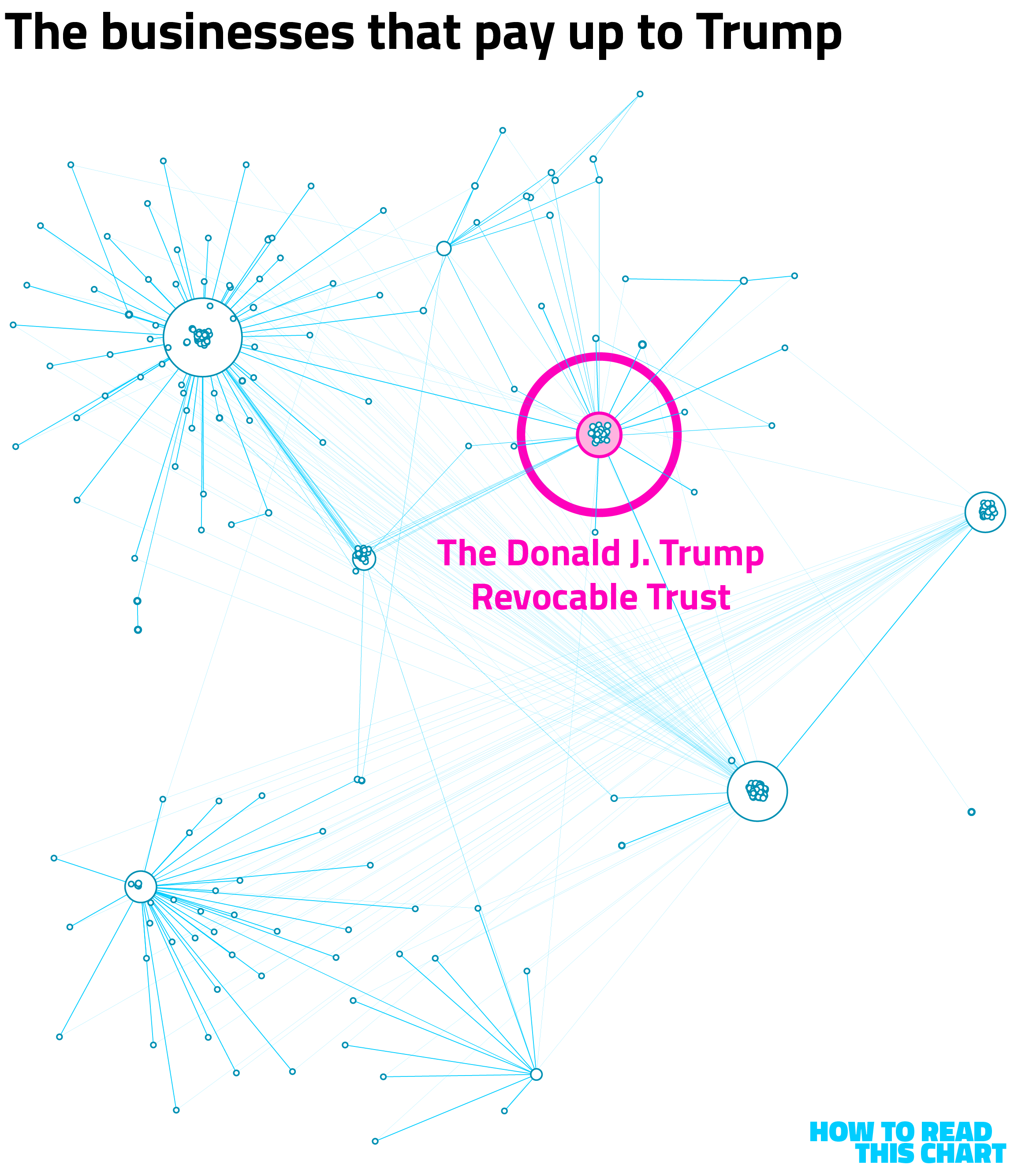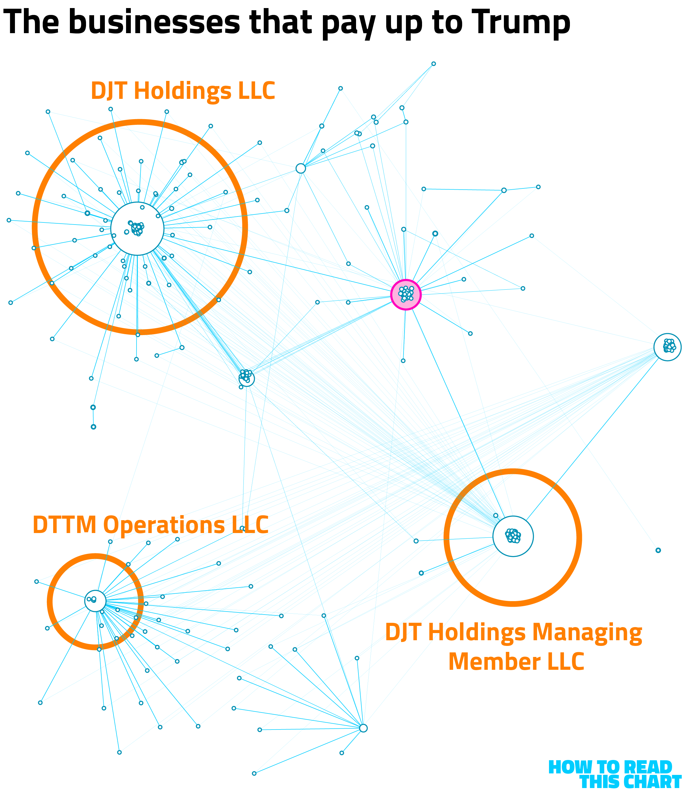 The highlighted pink circle on that chart is the trust that was created for Trump before he entered the White House during his first term. The idea was that this would introduce a layer of abstraction between him (as president) and his income (as a business owner), though experts at the time and since didn't think it would actually do much.
